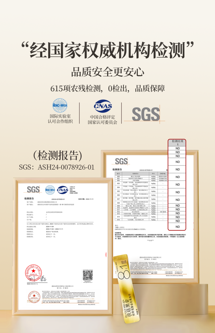 入口的东西,安全绝对是第一位。茯蓕黑金拥有SGS权威检测报告,各项指标全部合格!