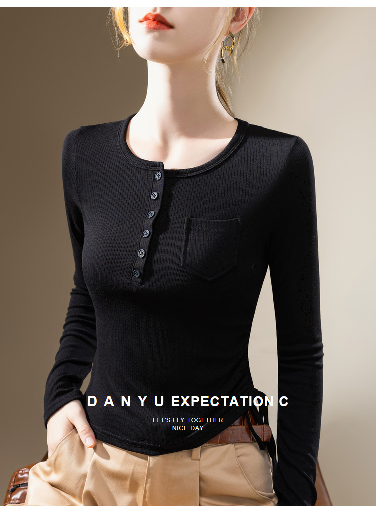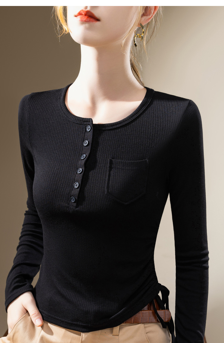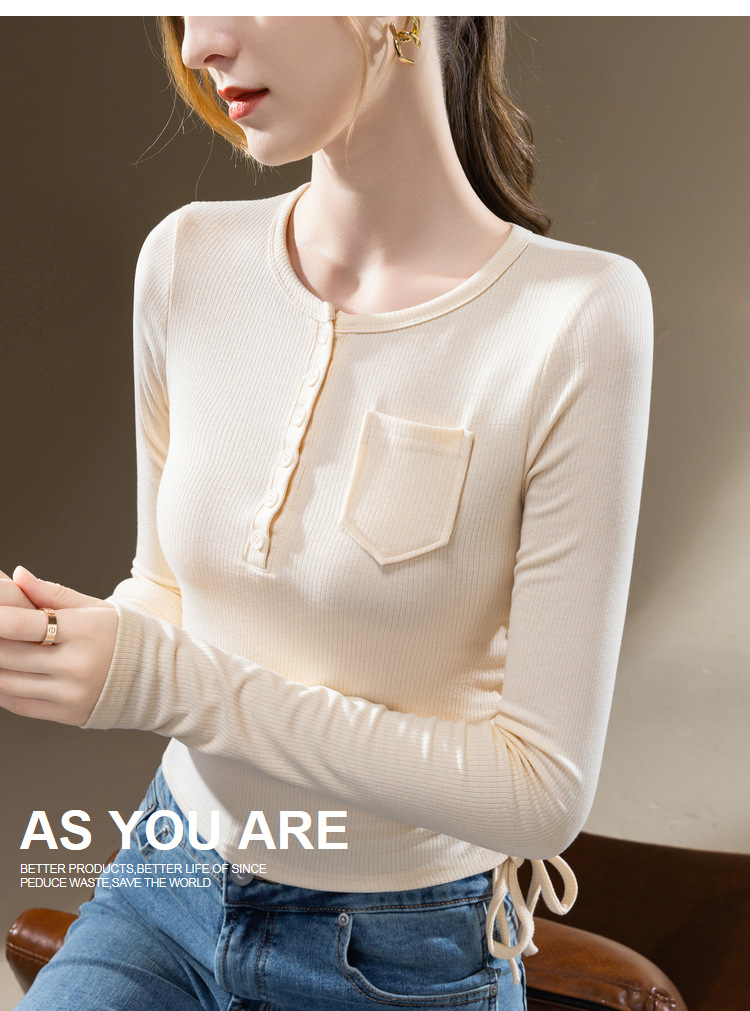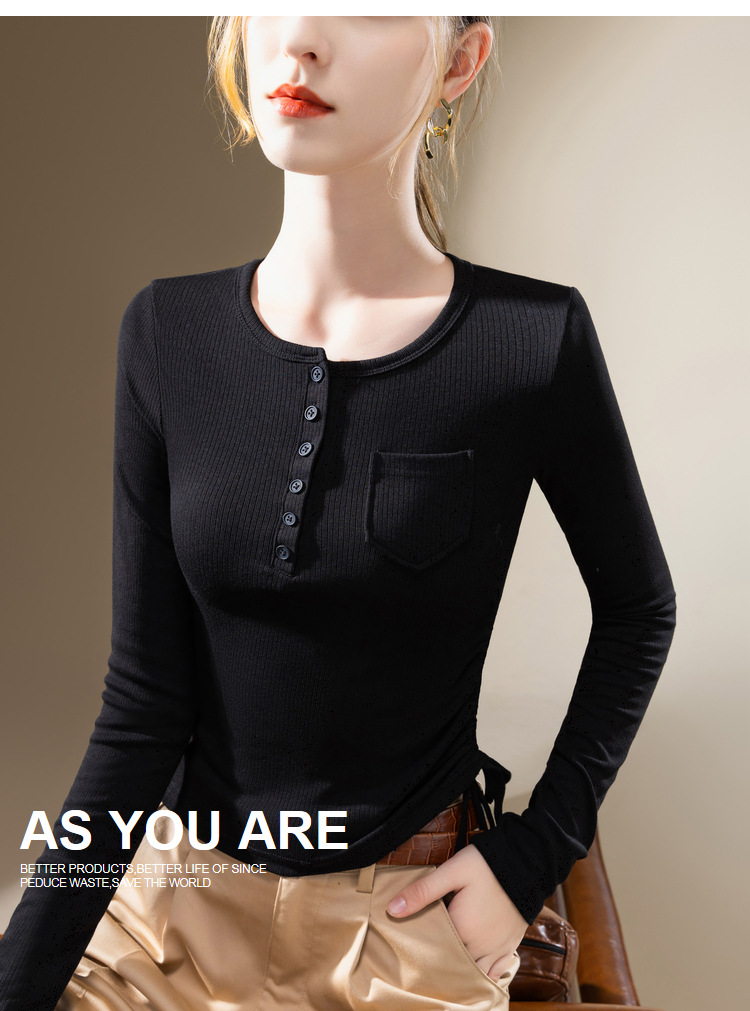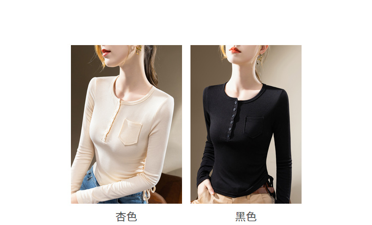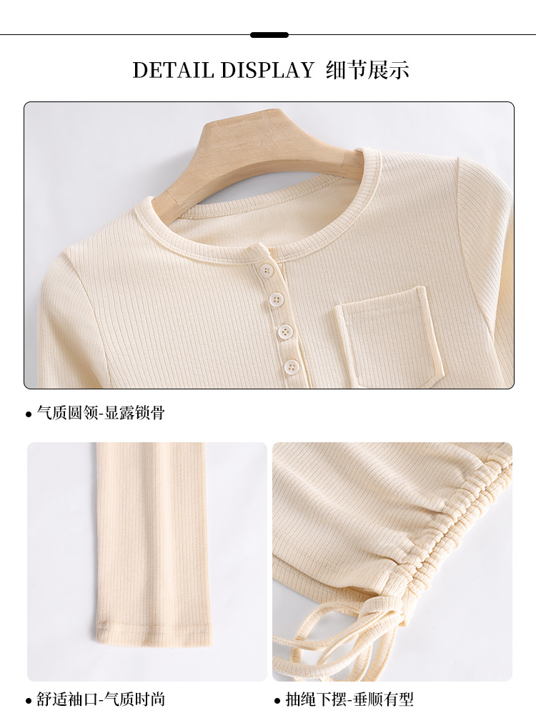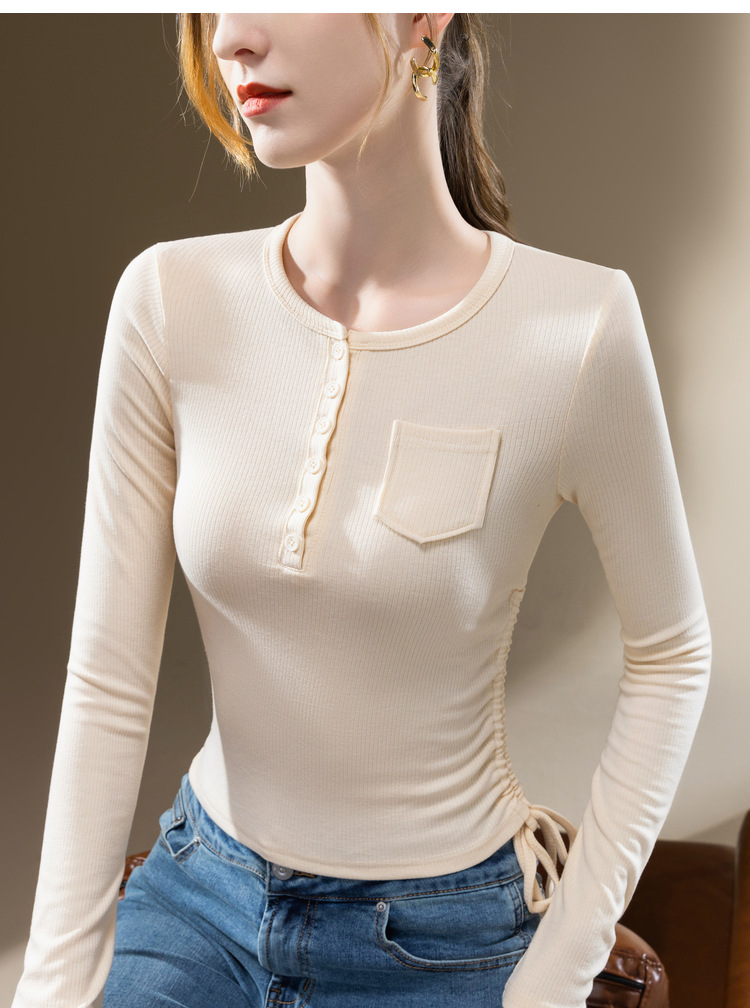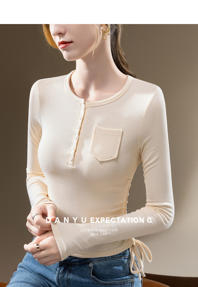 薄款打底衫女,新款欧货女装纯色圆领长袖t恤收腰内搭抽绳上衣SG-DY331997