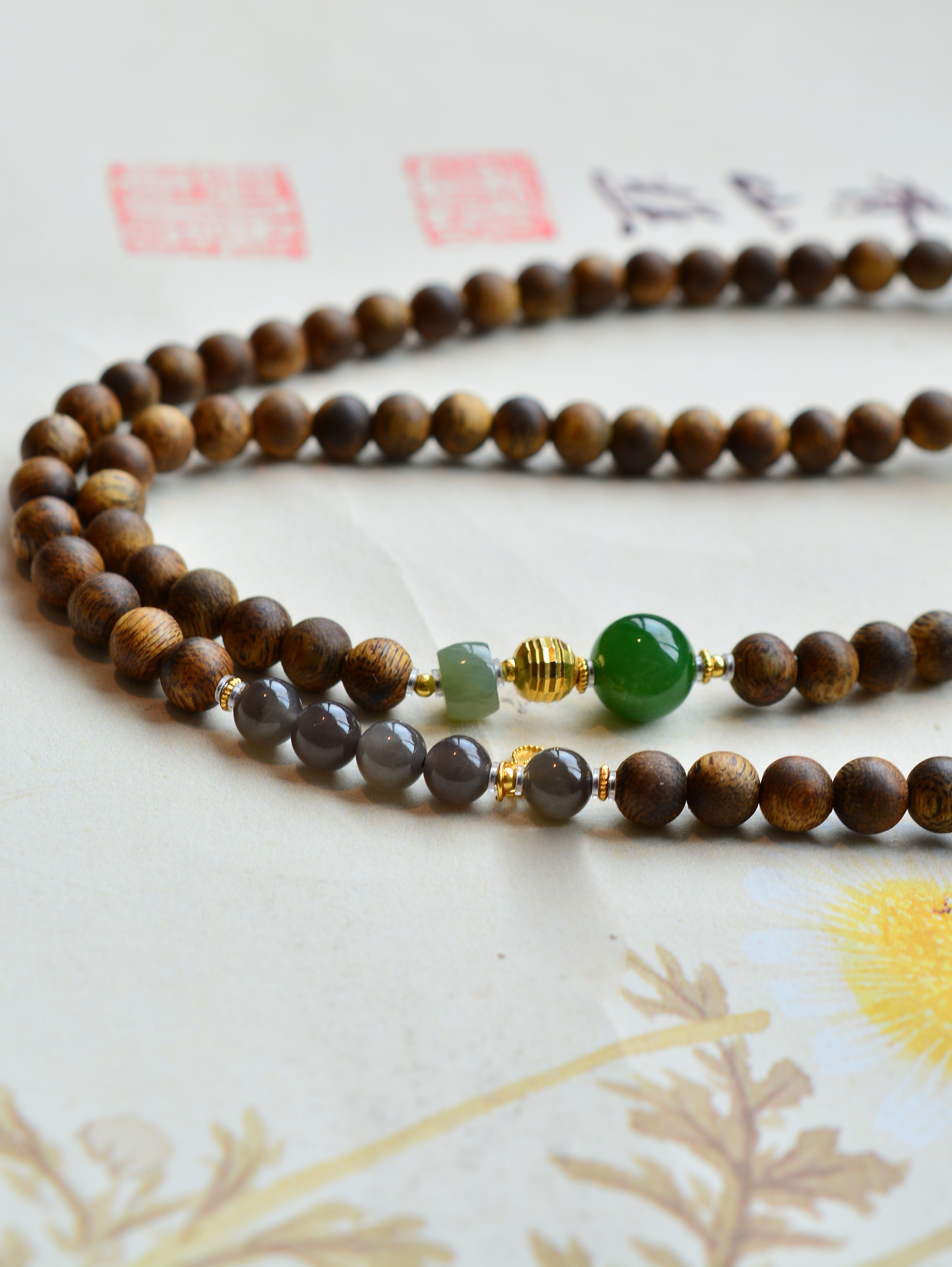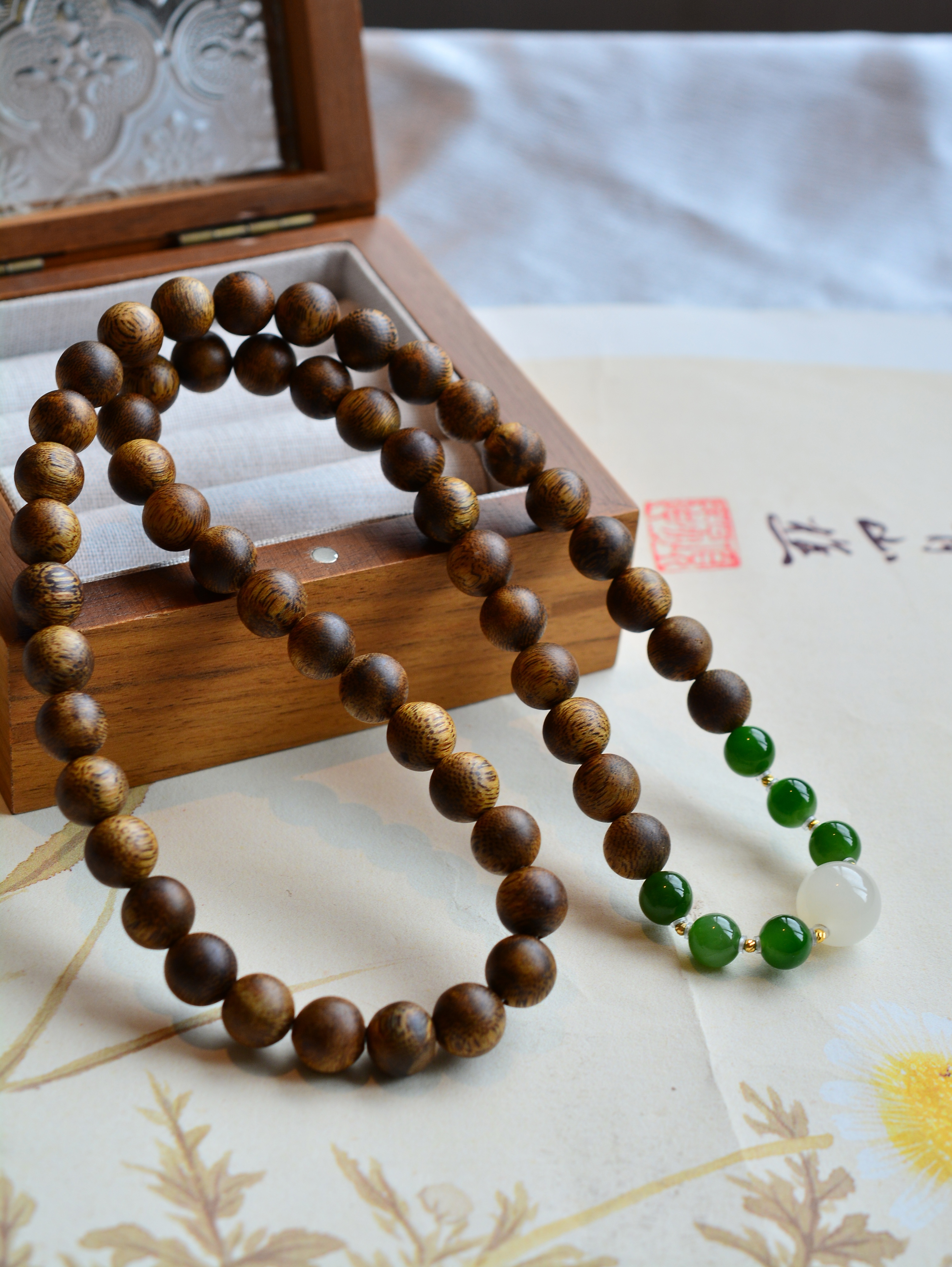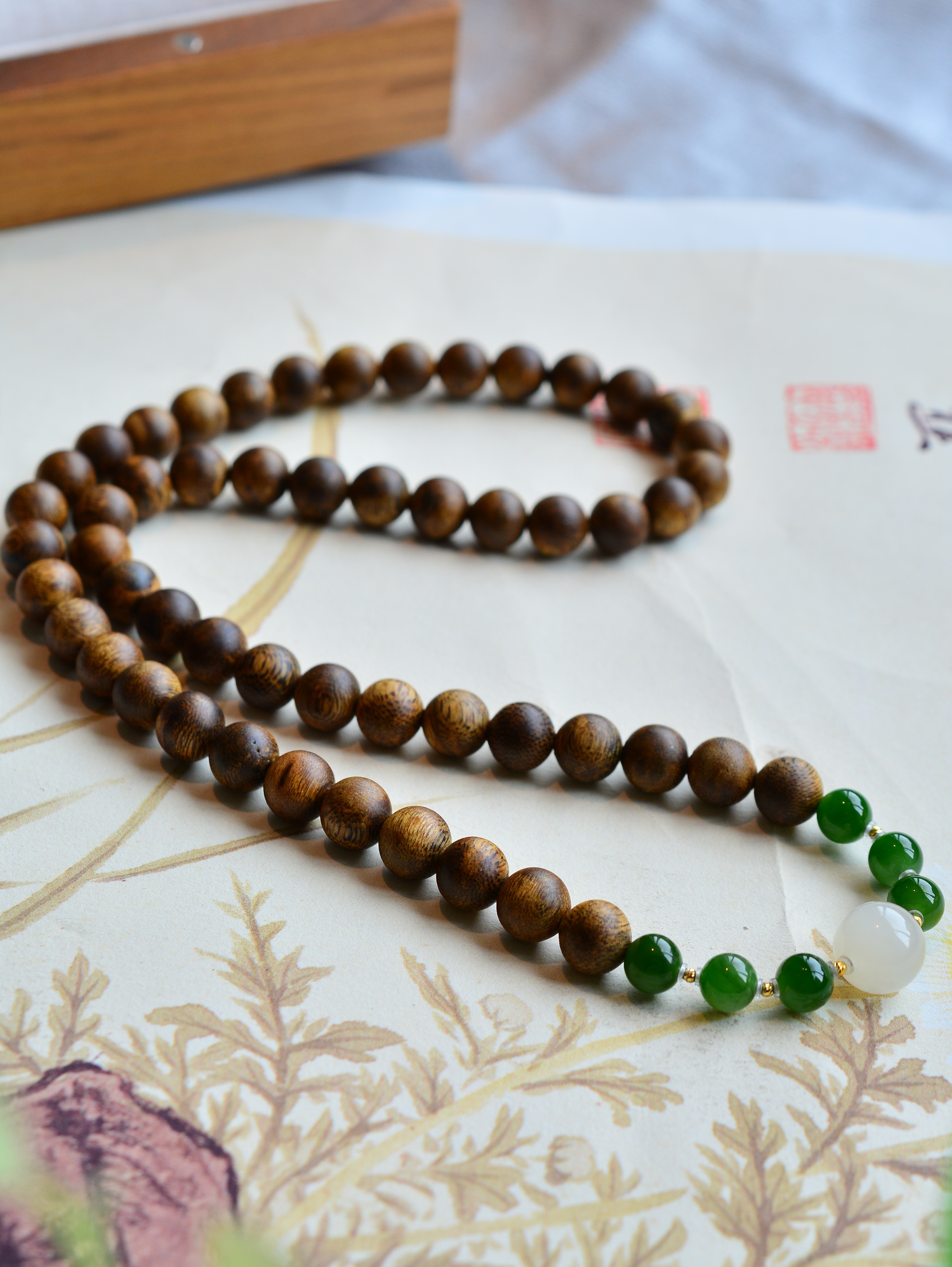 ZL723 【白玉碧玉奇楠圆珠沉香珠链】