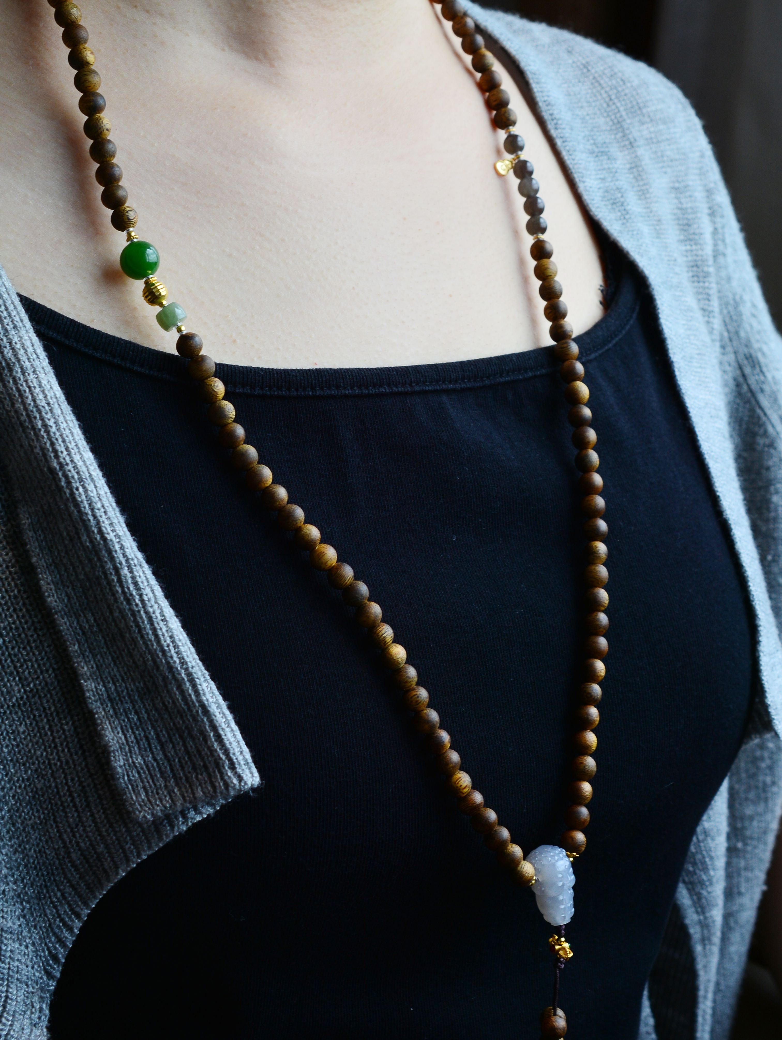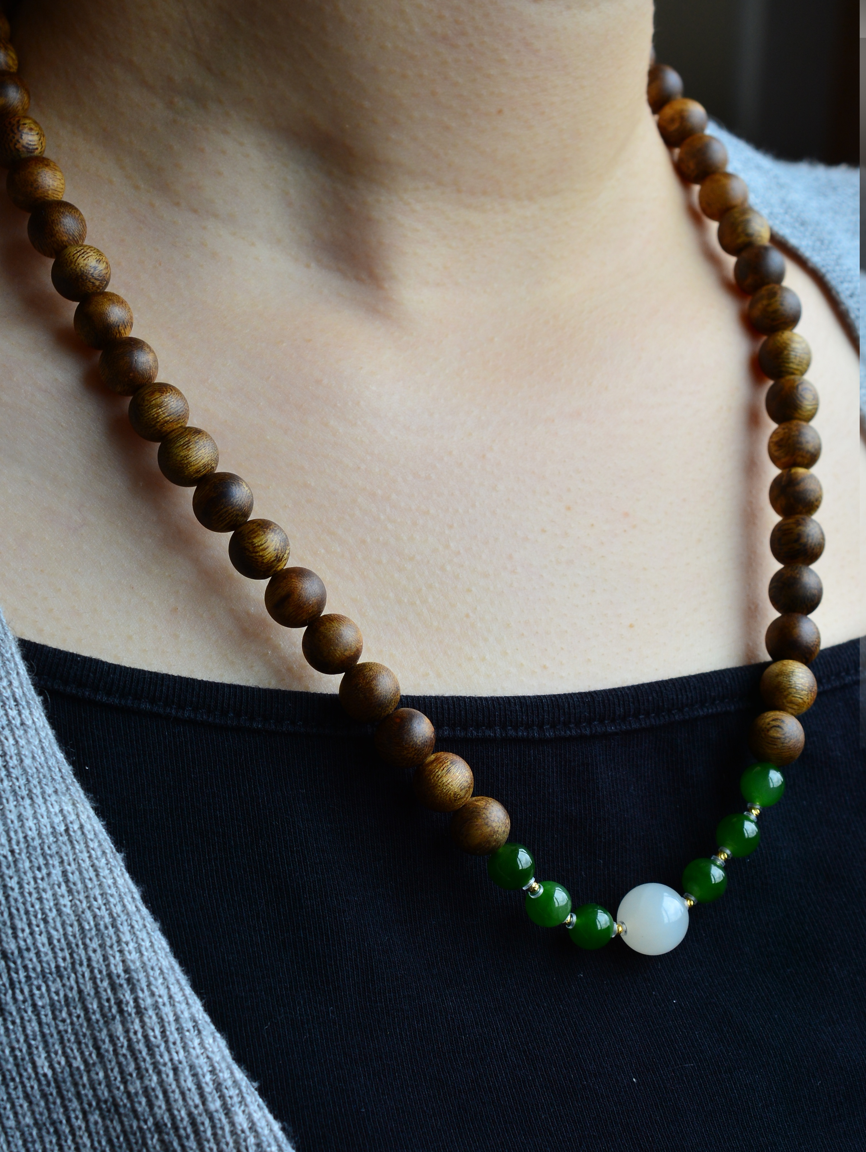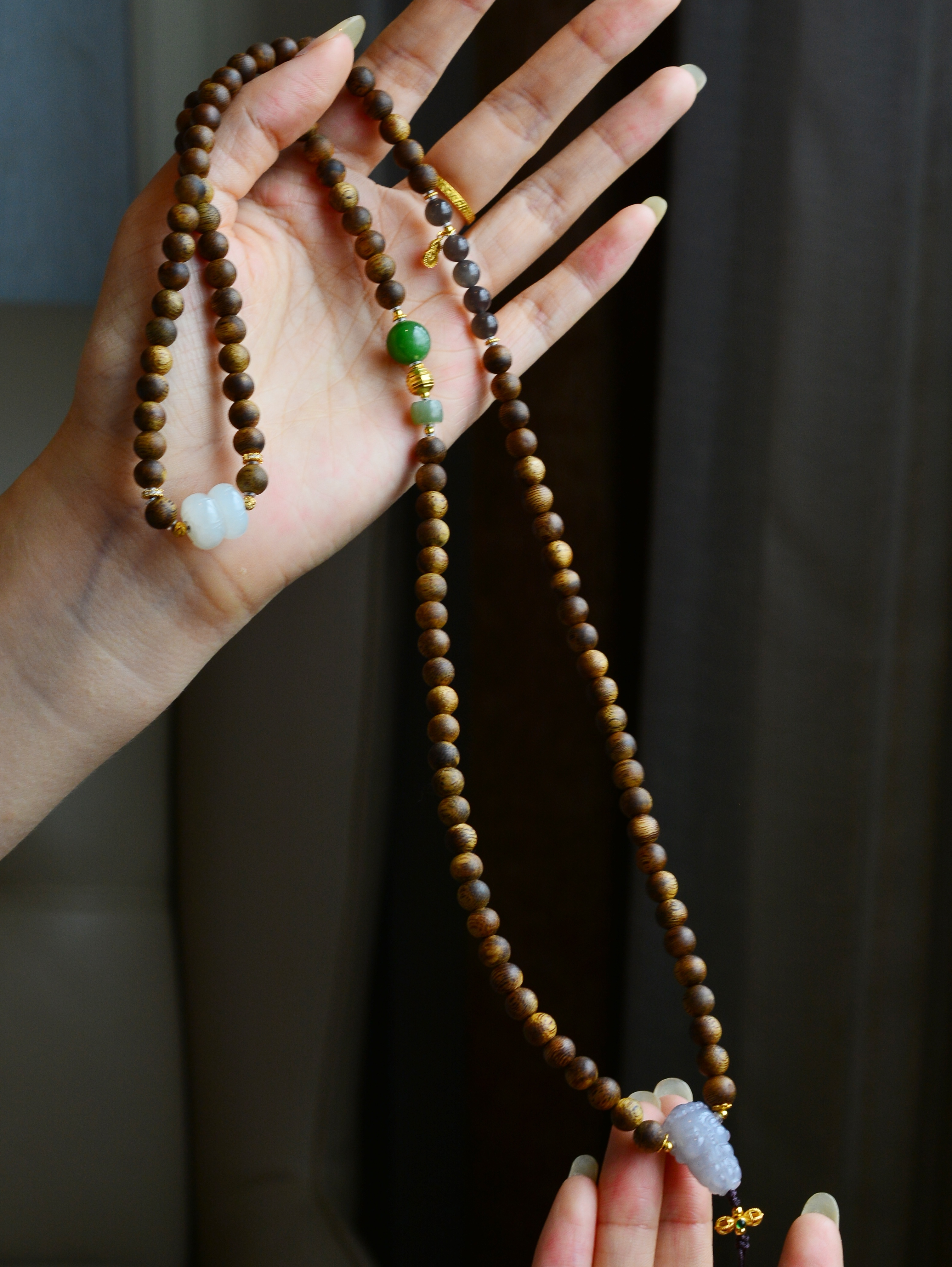 ZL723 【白玉碧玉奇楠圆珠沉香珠链】
