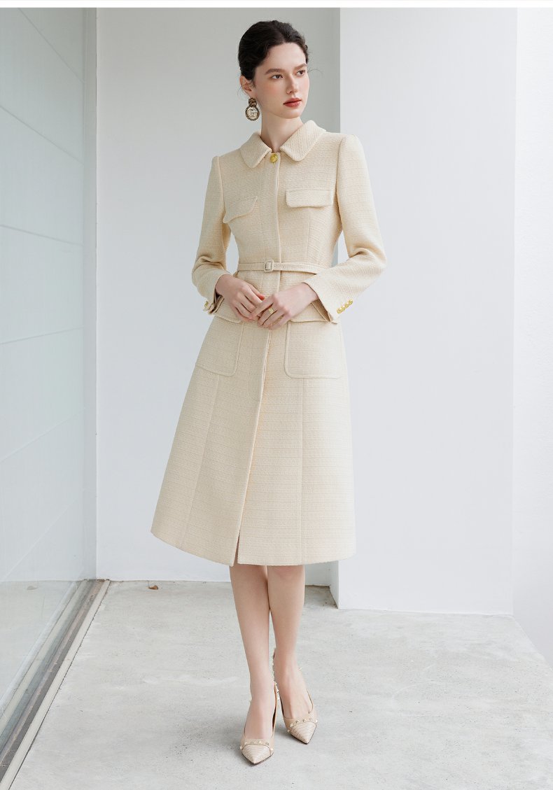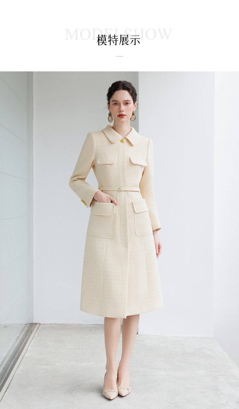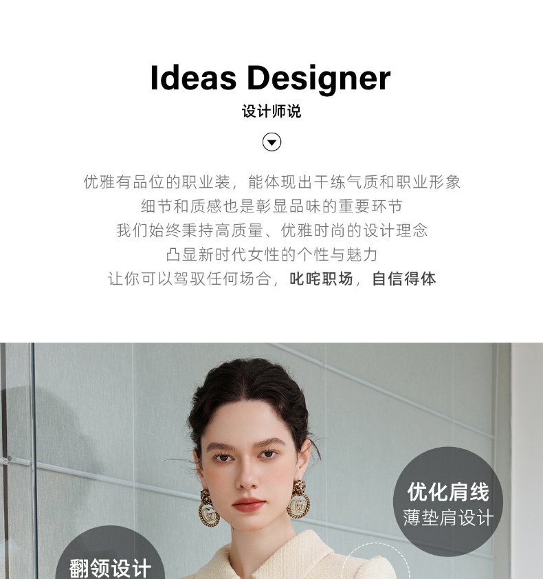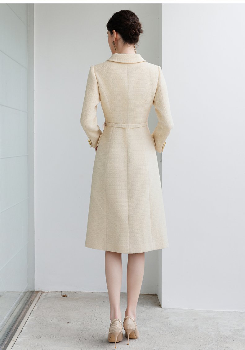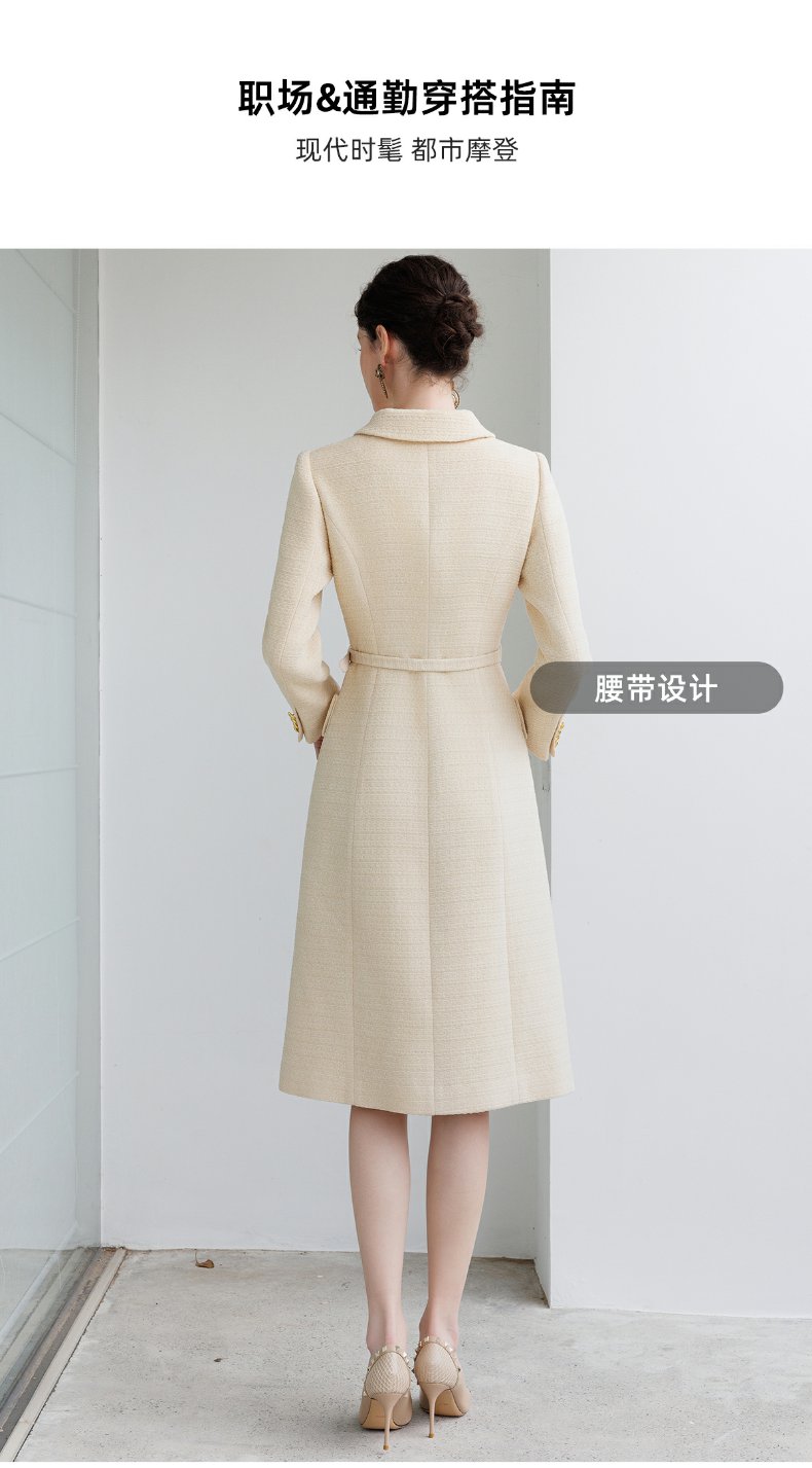 IWY/奶油黄色西装领连衣裙女双排扣中长款职业长裙美容院接待工装24C670-Y