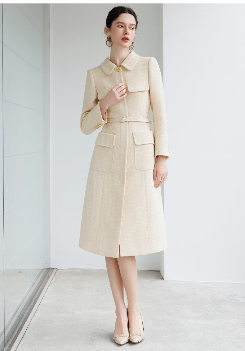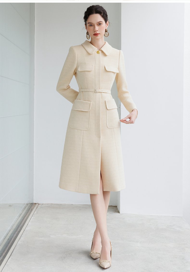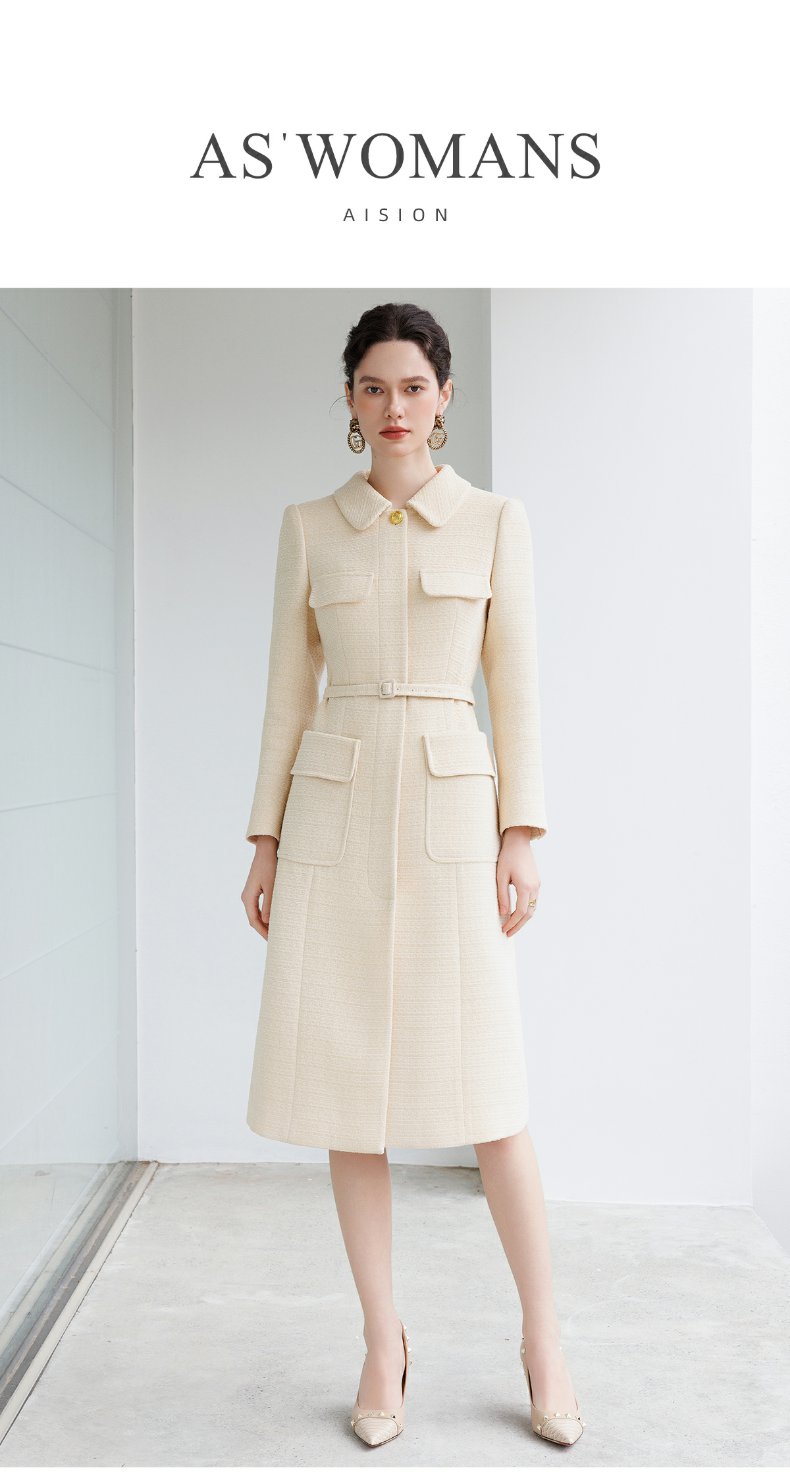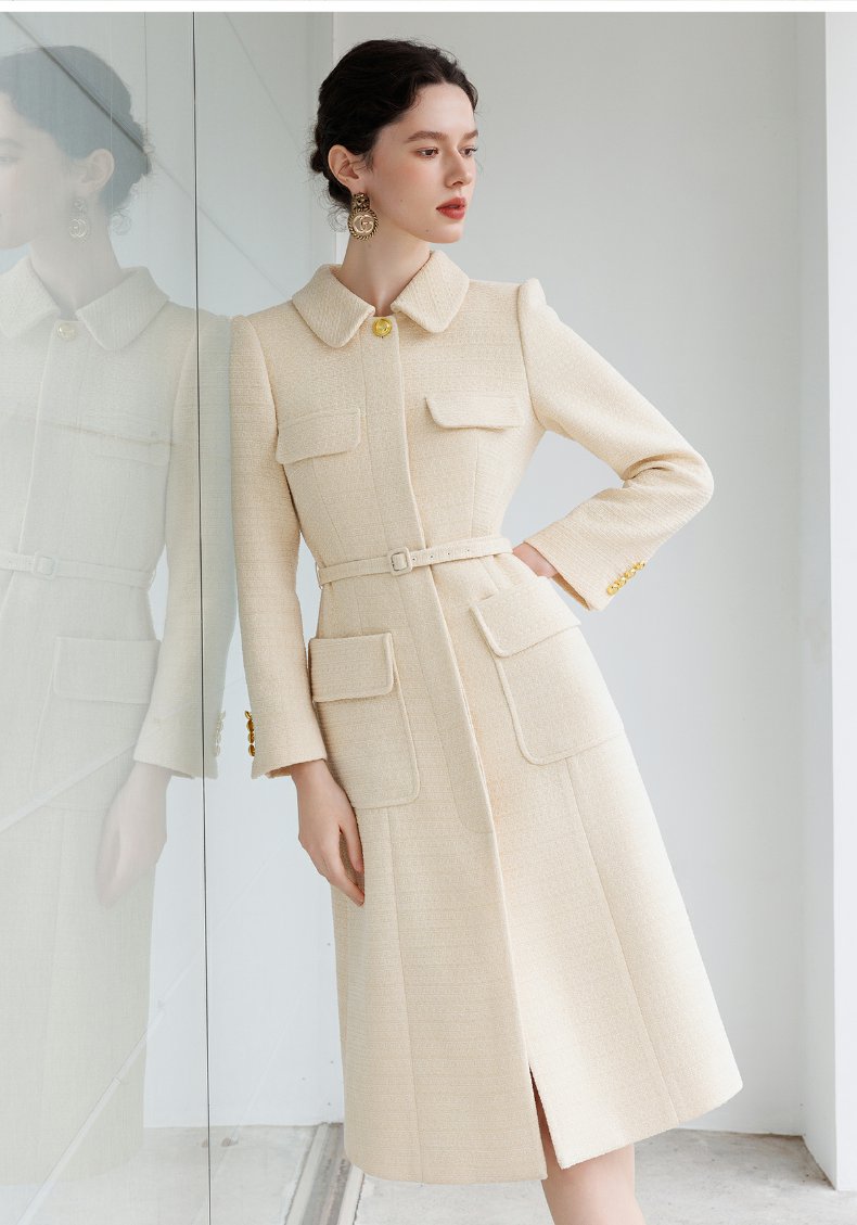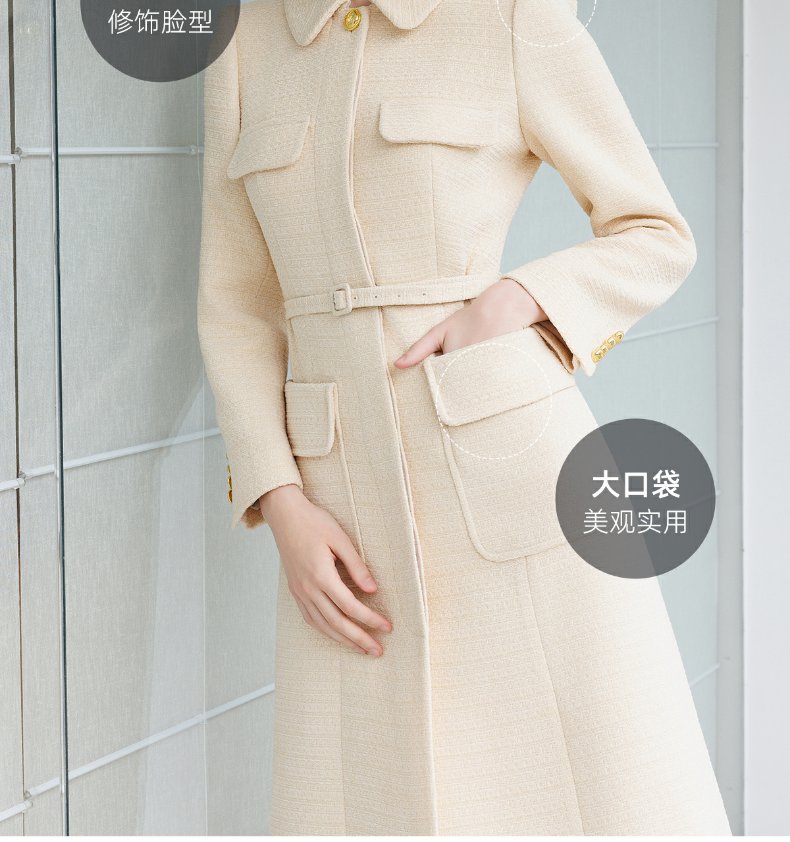 IWY/奶油黄色西装领连衣裙女双排扣中长款职业长裙美容院接待工装24C670-Y