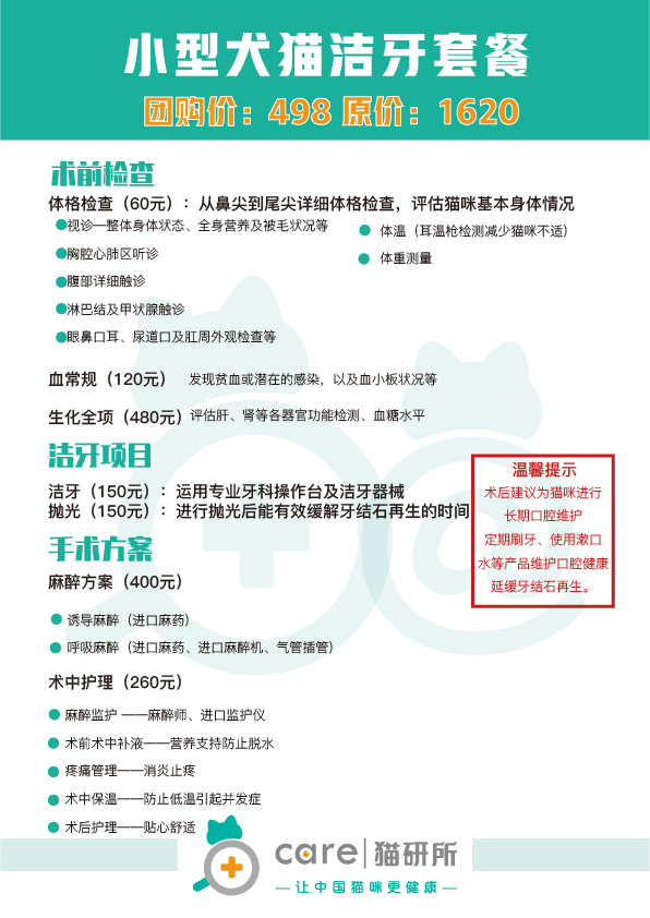 【爱宠护牙月】小型犬猫超声波洁牙+抛光套餐 生化十五项 血常规 呼吸麻醉 【5kg以上需补充麻醉耗材费】
