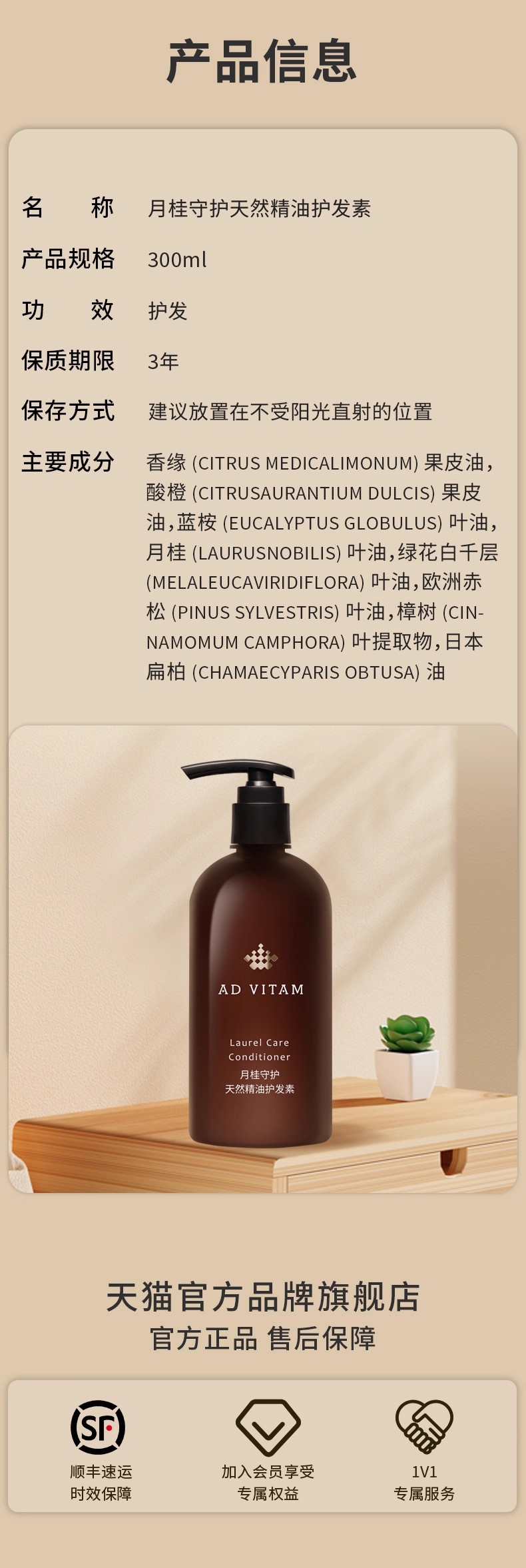 艾薇丹月桂守护天然精油护发素 300ml