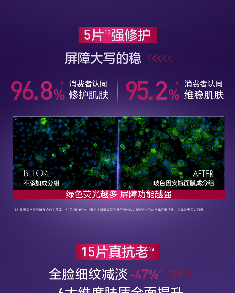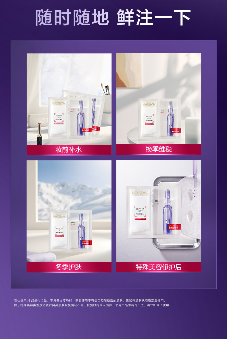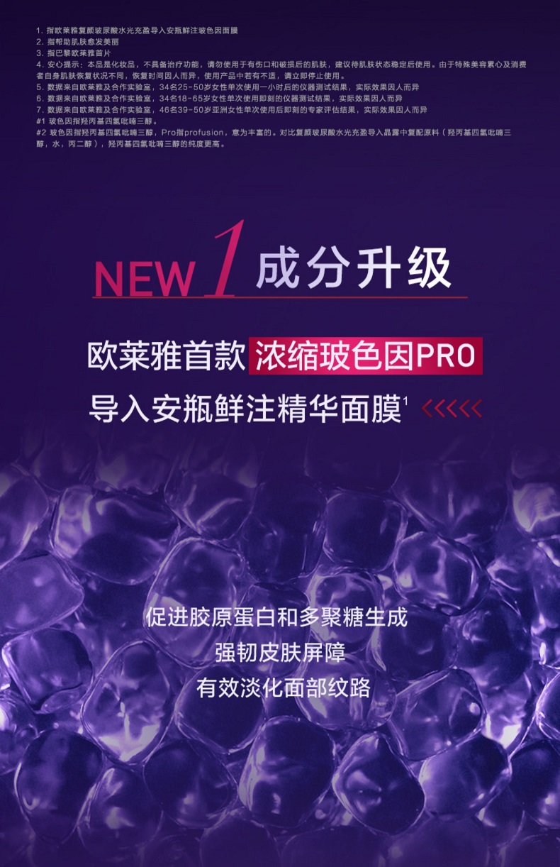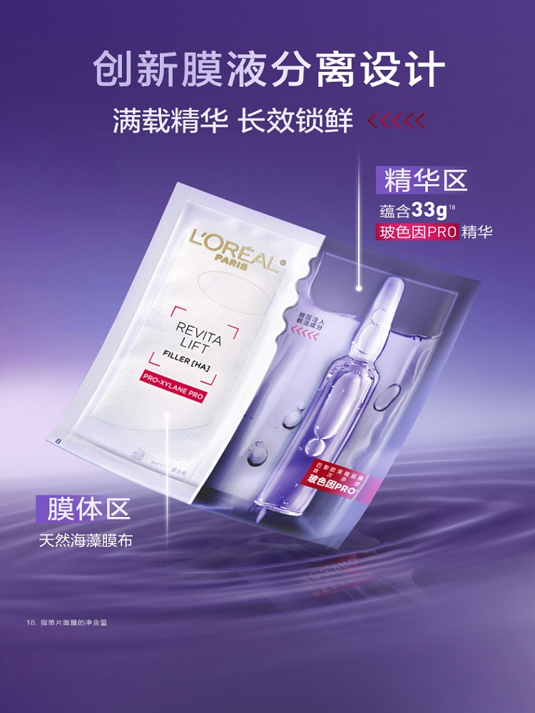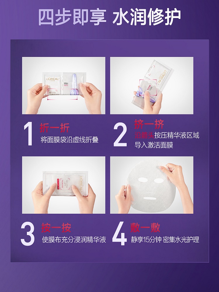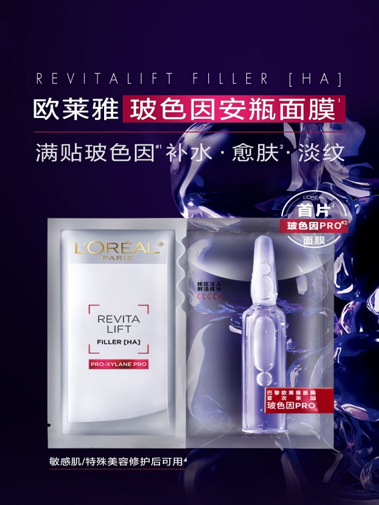 欧莱雅复颜玻尿酸水光充盈导入安瓶鲜注精华面膜33g×5片装-2016145(新老包装随机发货)