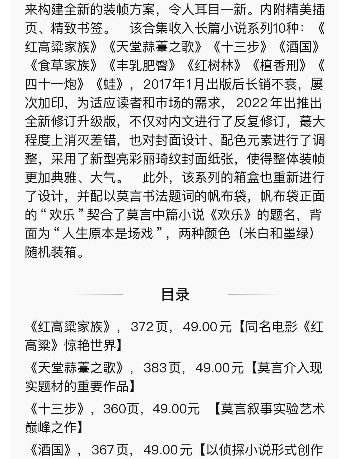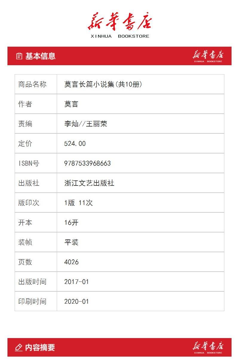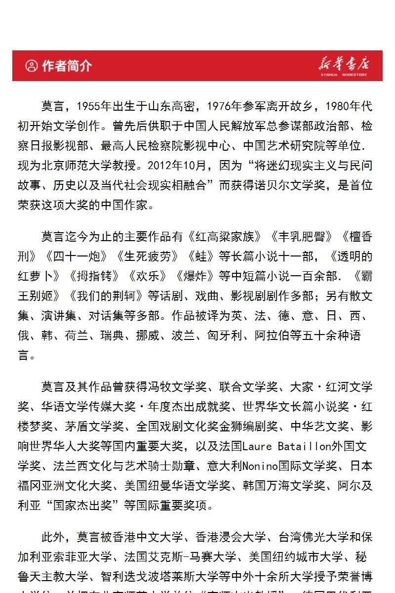 莫言长篇小说集(共10册)红高粱家族十三步酒国食草家族丰乳肥臀