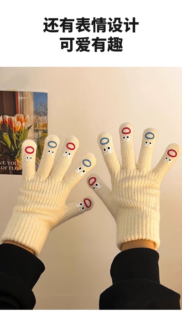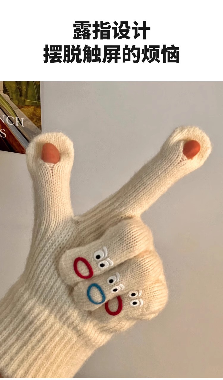 【露指设计!摆脱触屏的烦恼】大嘴怪手套五指可爱韩版毛线针织加厚保暖手套女冬季骑行可触摸屏。rc