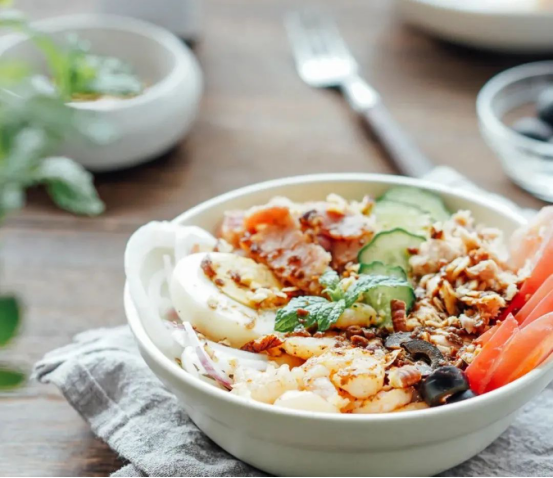 口感清爽,微甜微酸 减肥吃的东西都很清淡嘴里没味 油醋汁却非常提鲜 轻食美味的选择,多种美味随意搭配