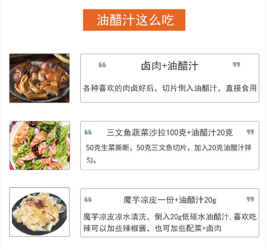 日常生活中,凉菜、沙拉、卤肉、统统可以,还可以搭配可以代替主食的魔芋面、魔芋米。 有了这款油醋汁,一瓶可以顶多种调料,几乎什么都不用添加。
