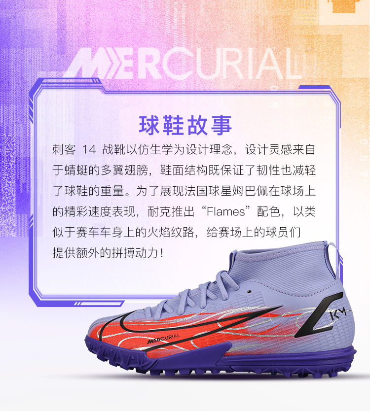 NIKE/耐克 TF碎钉中端高帮姆巴佩刺客14青少年足球鞋DB0935506