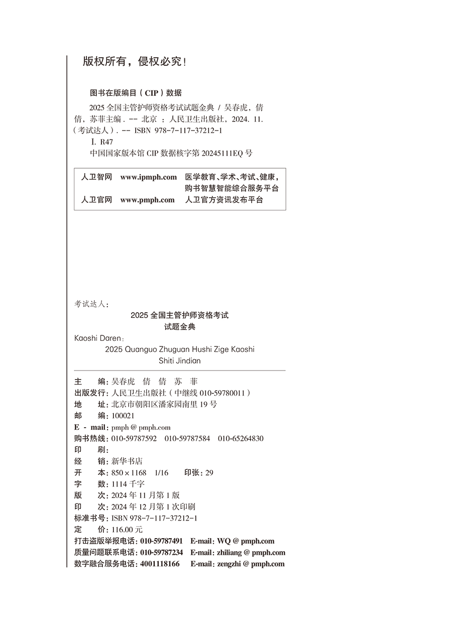 考试达人 2025全国主管护师资格考试 试题金典 吴春虎 王倩 刘哲哲 主编 2025职称考试用书 9787117372121 人民卫生出版社
