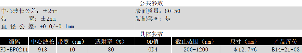 BP909/10K OD3@200-1200 T>80% Φ12.7*6 带通滤光片 (带套圈)