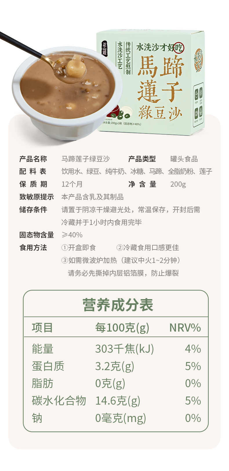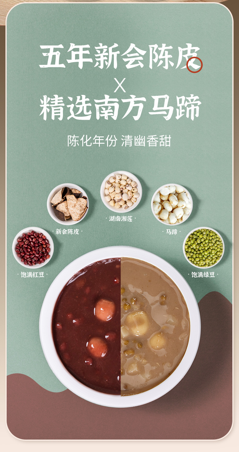 【陈皮莲子红豆沙/马蹄莲子绿豆沙】精选五年新会陈皮+南方马蹄水洗沙工艺 豆香浓郁 沙感绵密【AA】