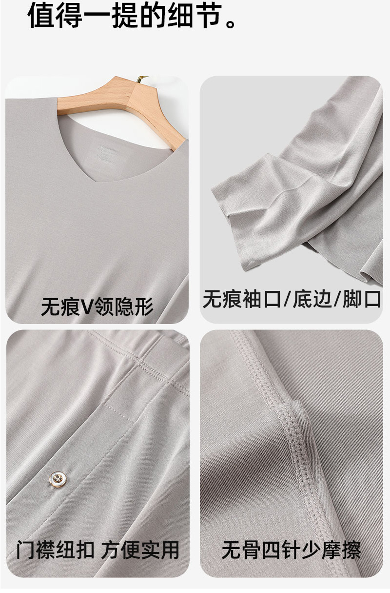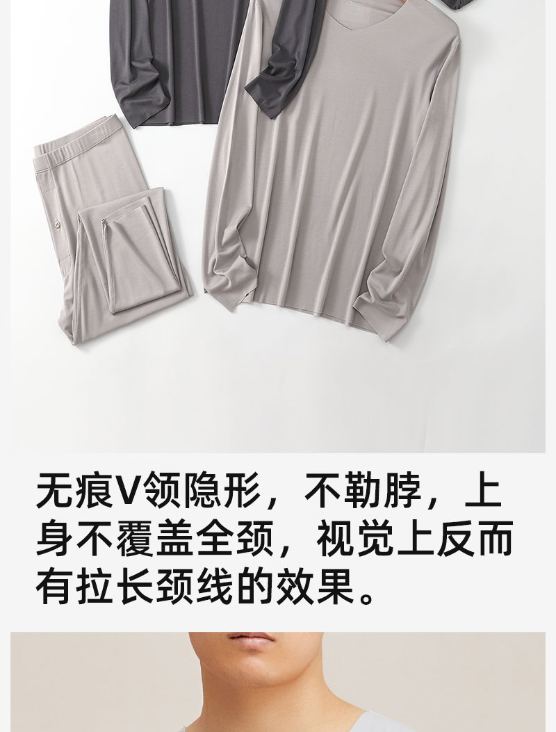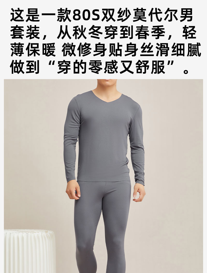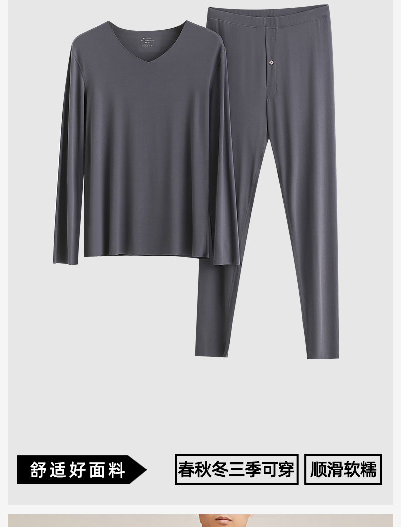 【男款】兰精莫代尔男套装 大圆领修身保暖秋衣秋裤打底衣 舒适亲肤透气