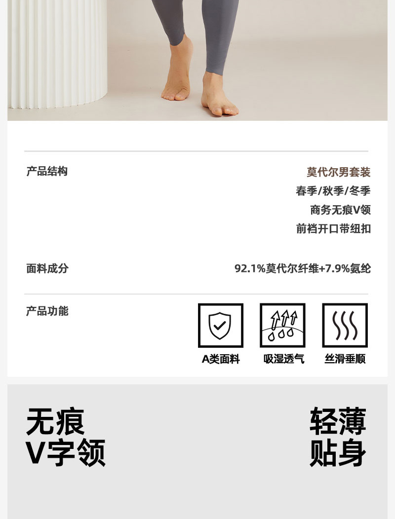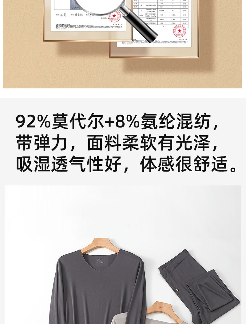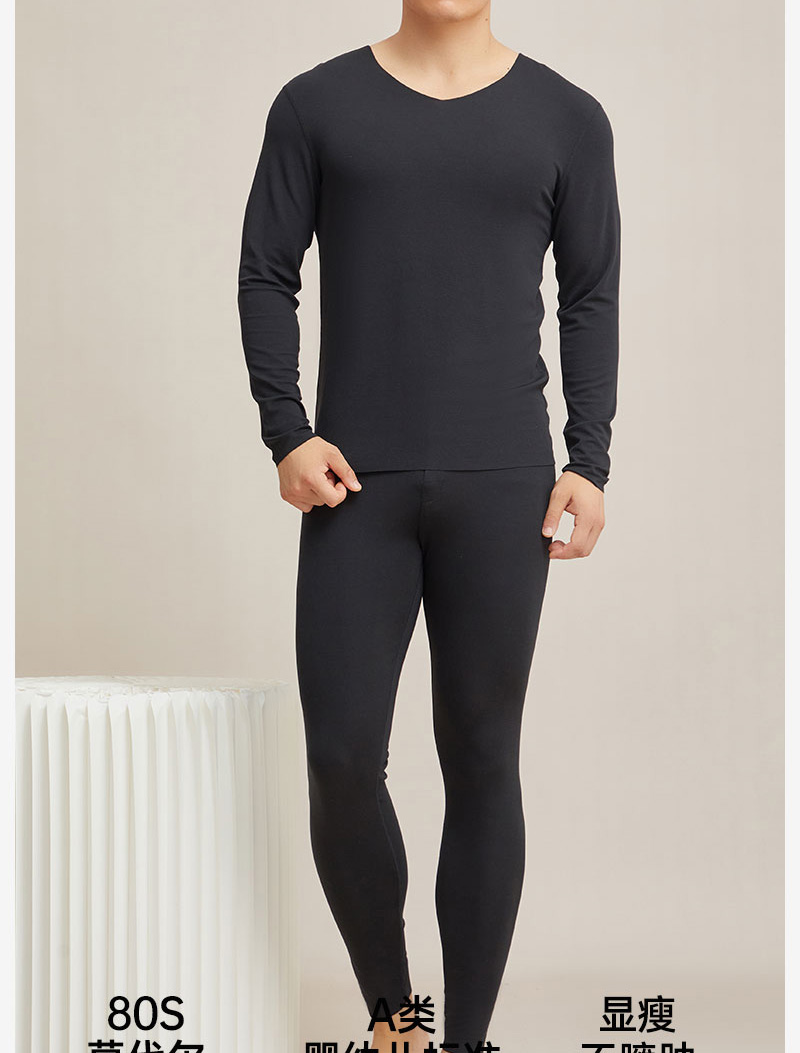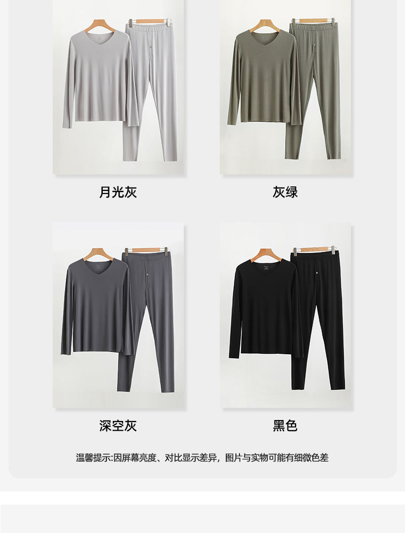【男款】兰精莫代尔男套装 大圆领修身保暖秋衣秋裤打底衣 舒适亲肤透气