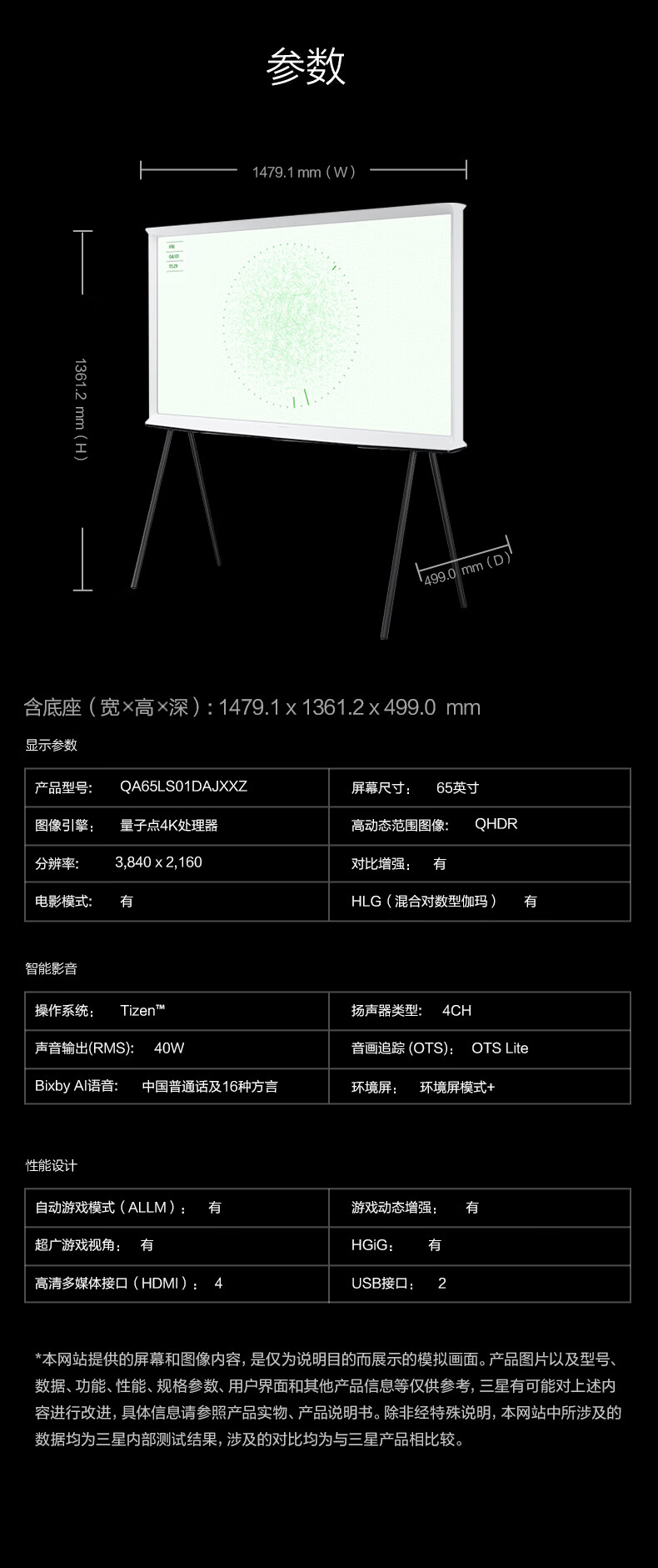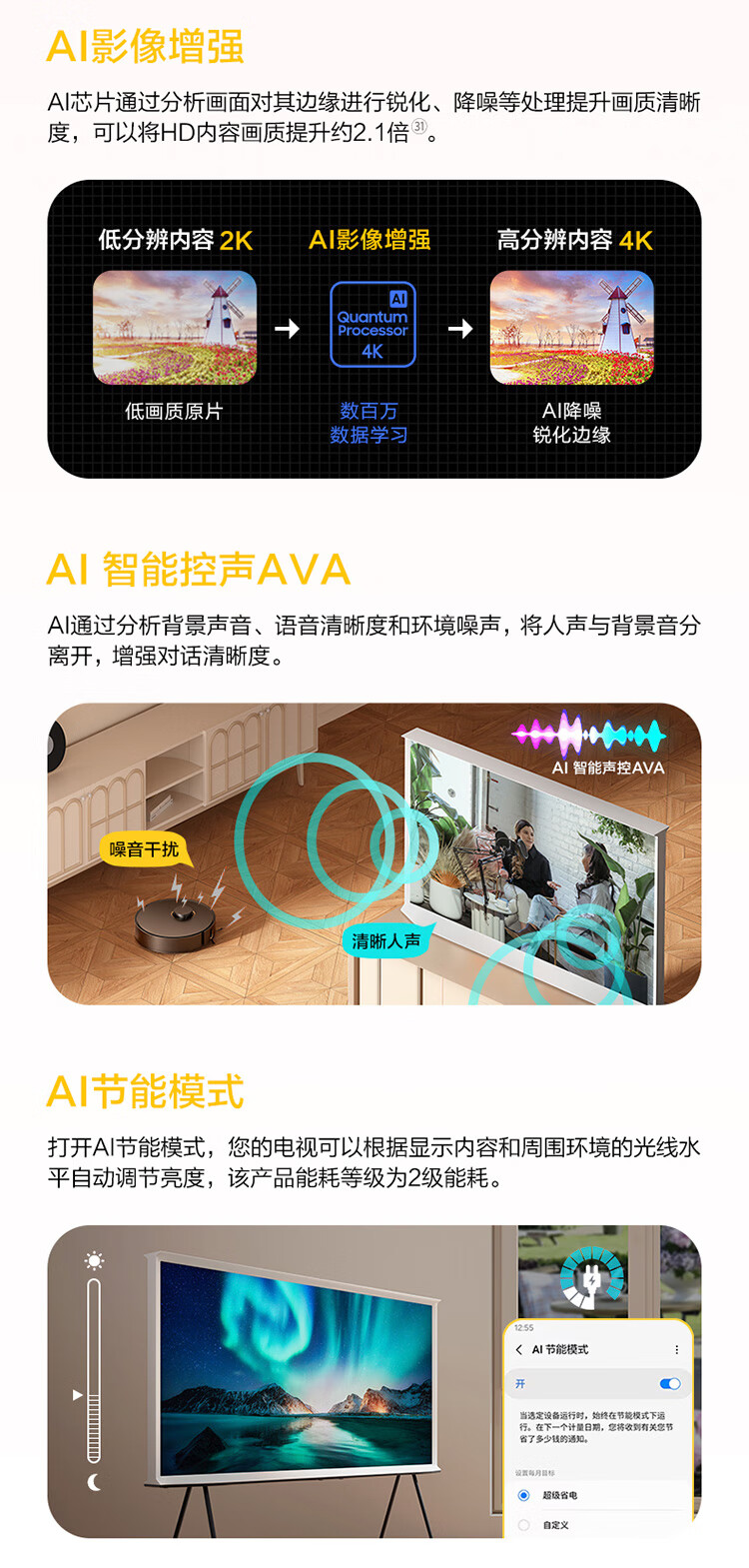 三星(SAMSUNG)Serif画境艺术电视哑光屏显 QLED量子点QA系列二级能效补贴