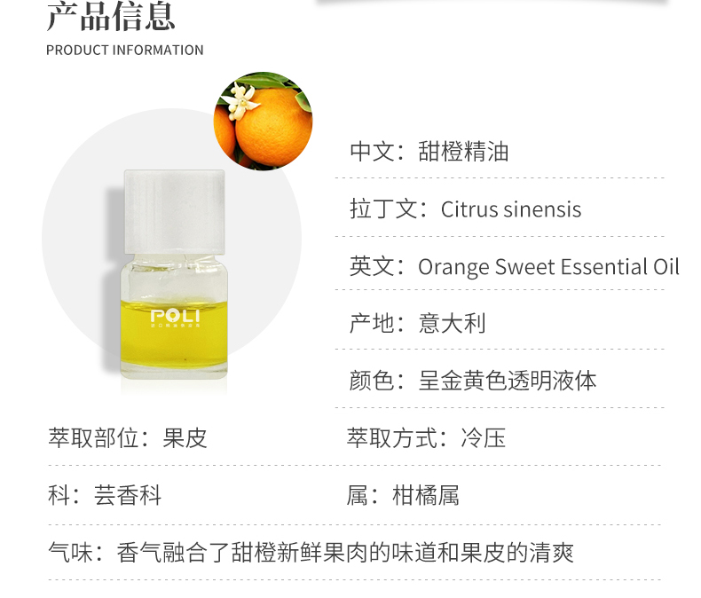 意大利有机甜橙精油 进口精油原料批发灌装 颇黎POLI单方按摩精油