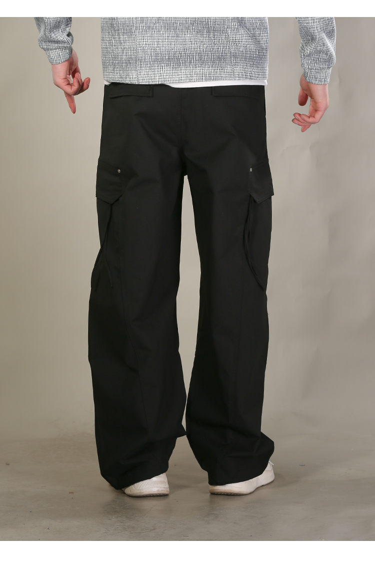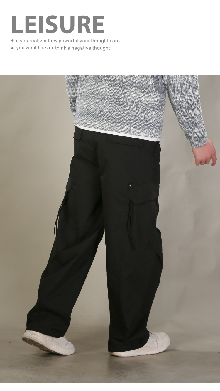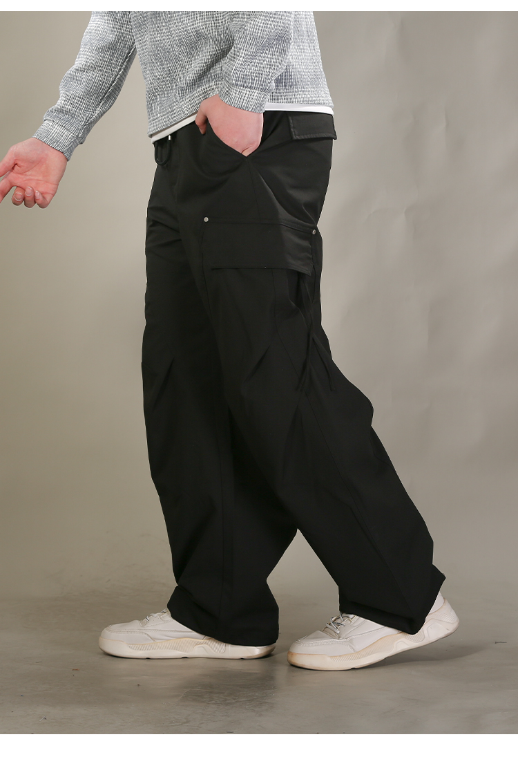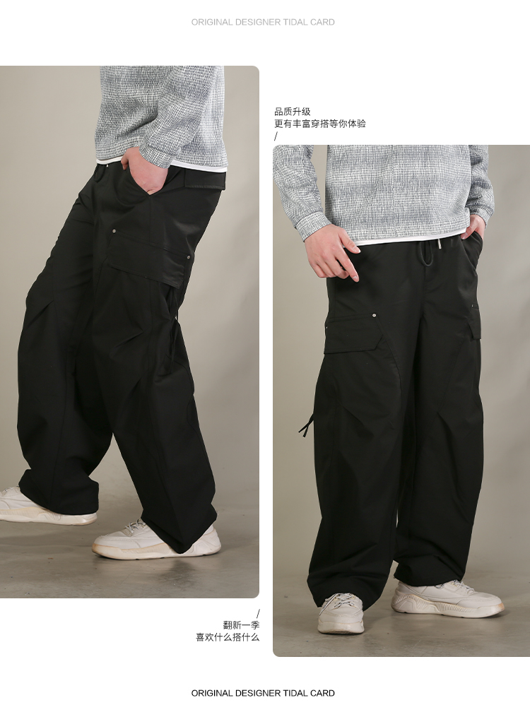 DRONKOO 2026 抽绳松紧腰两侧大袋盖膝盖捏褶中厚工装长裤