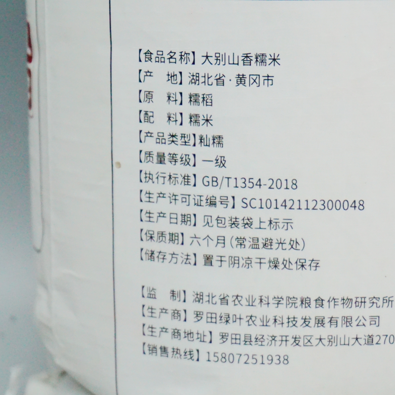 罗田 楚天绿叶 大别山香糯米5kg/袋