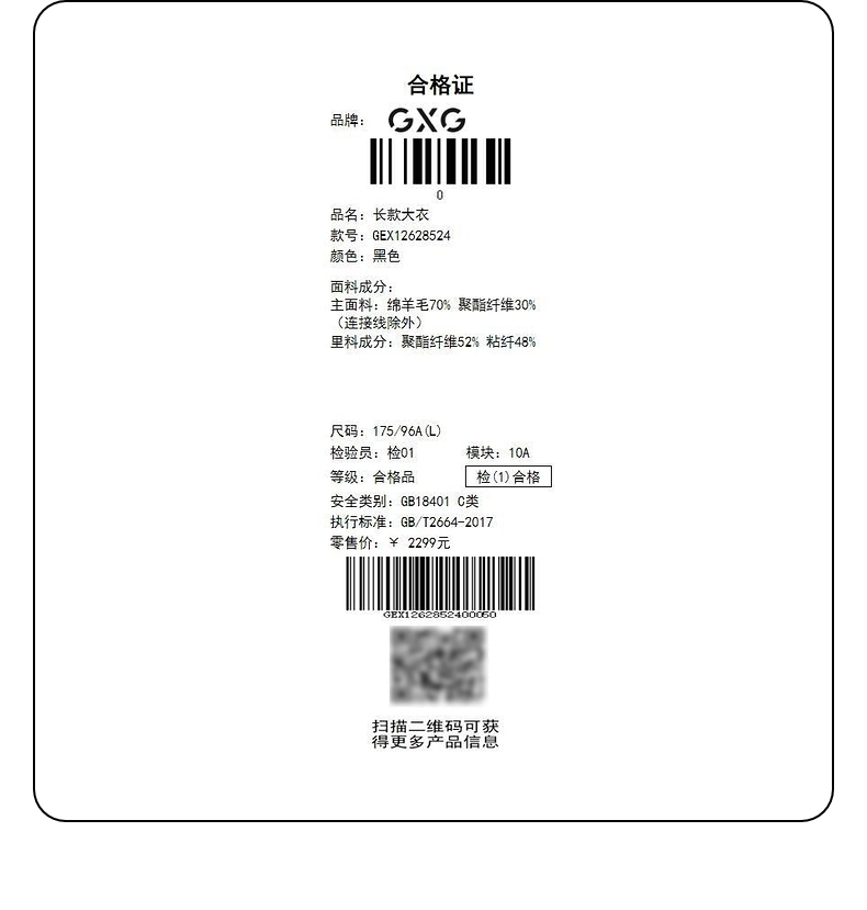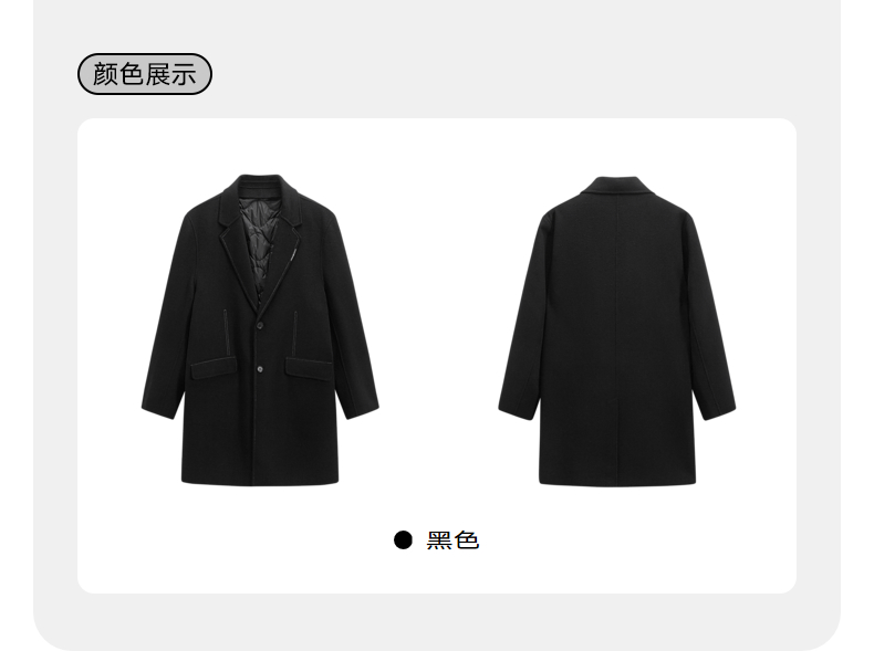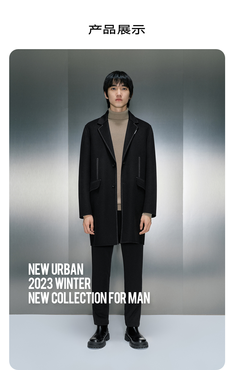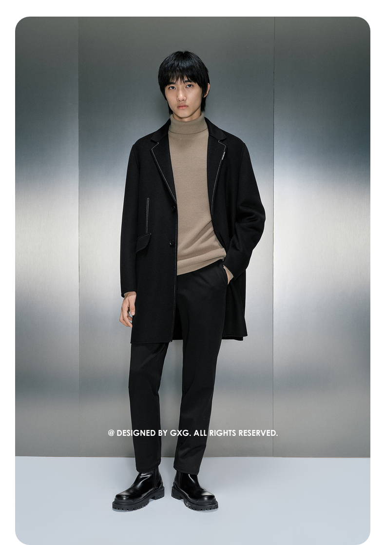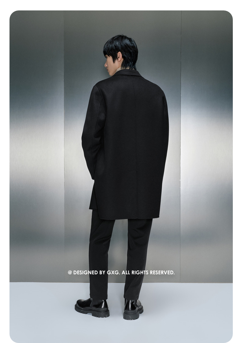 GXG男装黑色简约时尚长款大衣 冬季热卖时尚长款大衣 GEX12628524