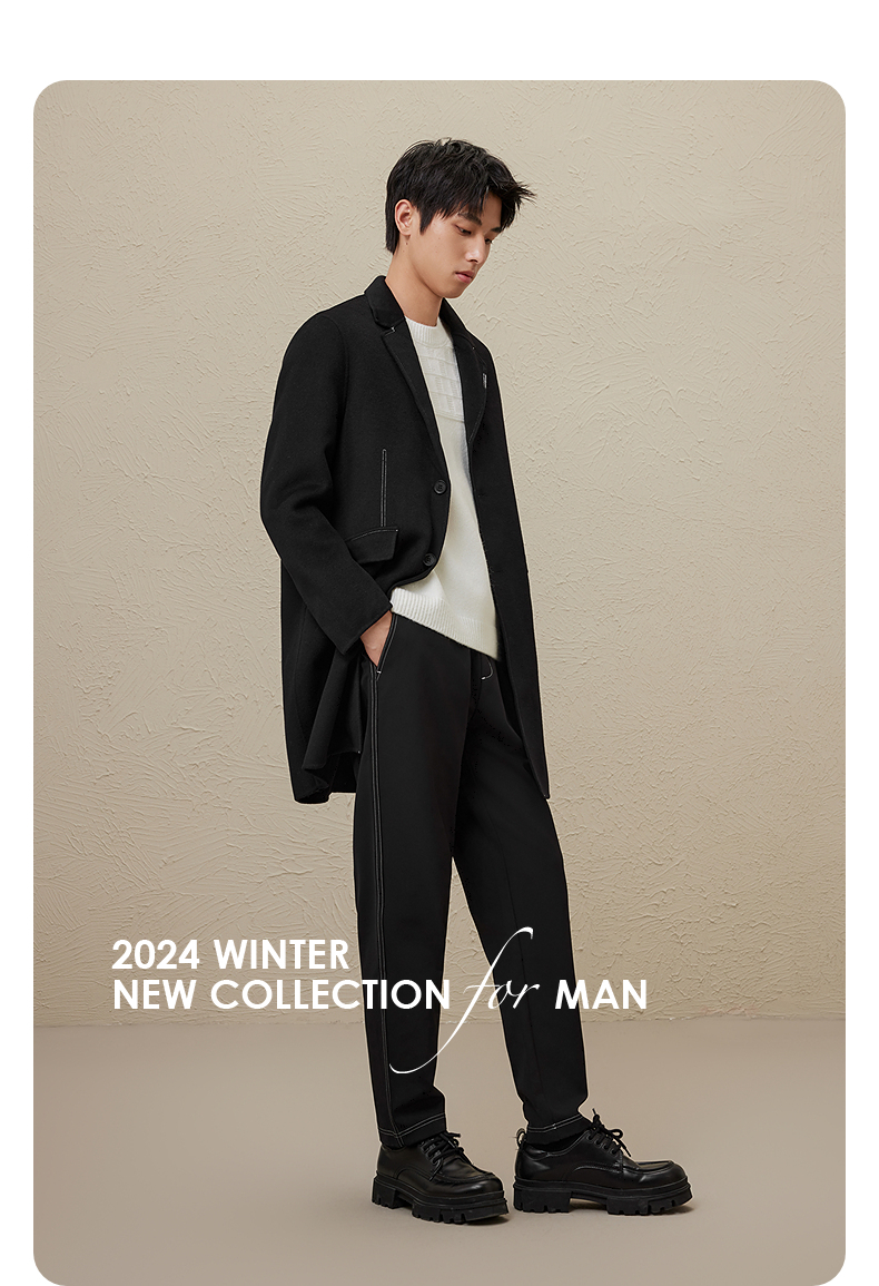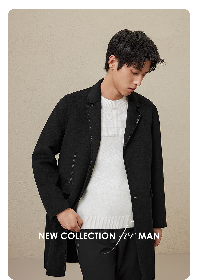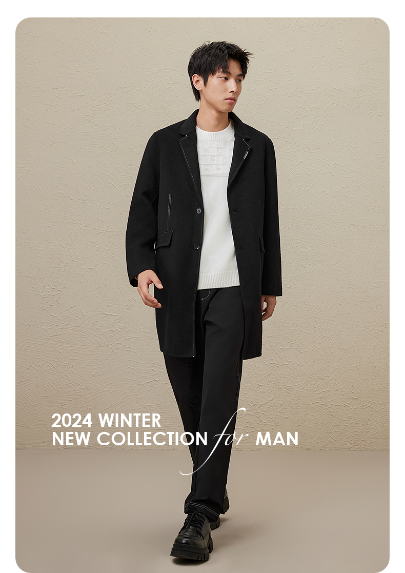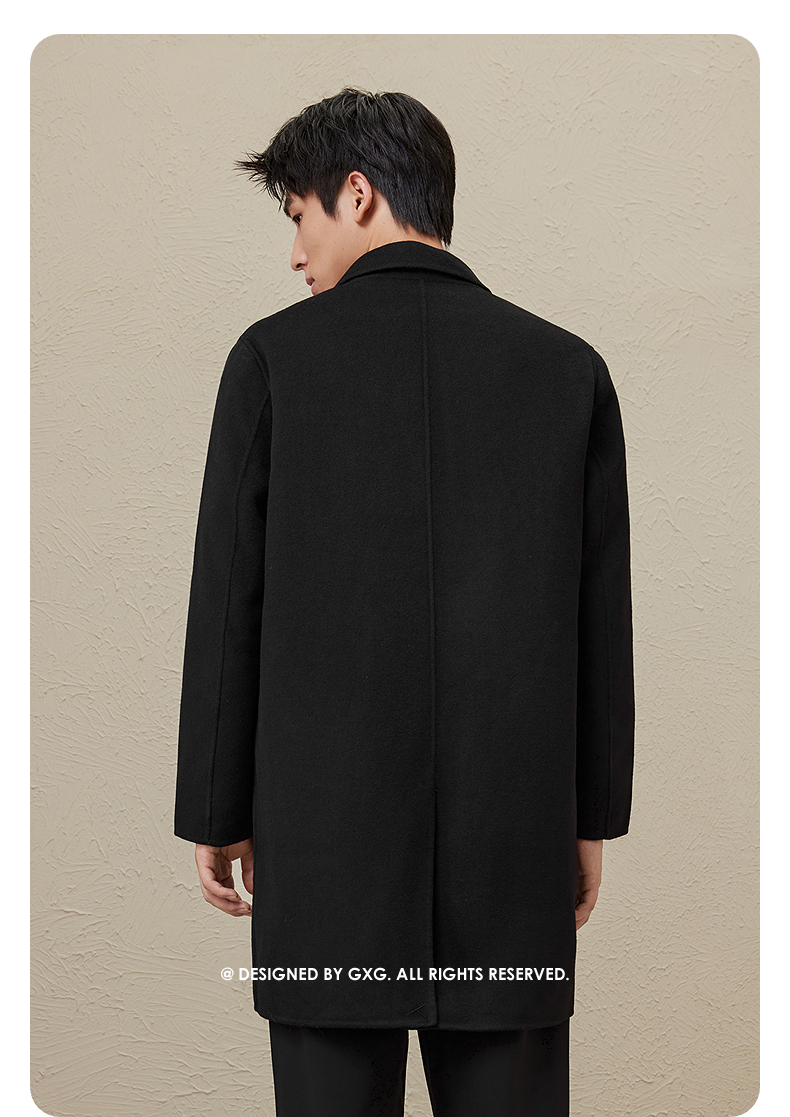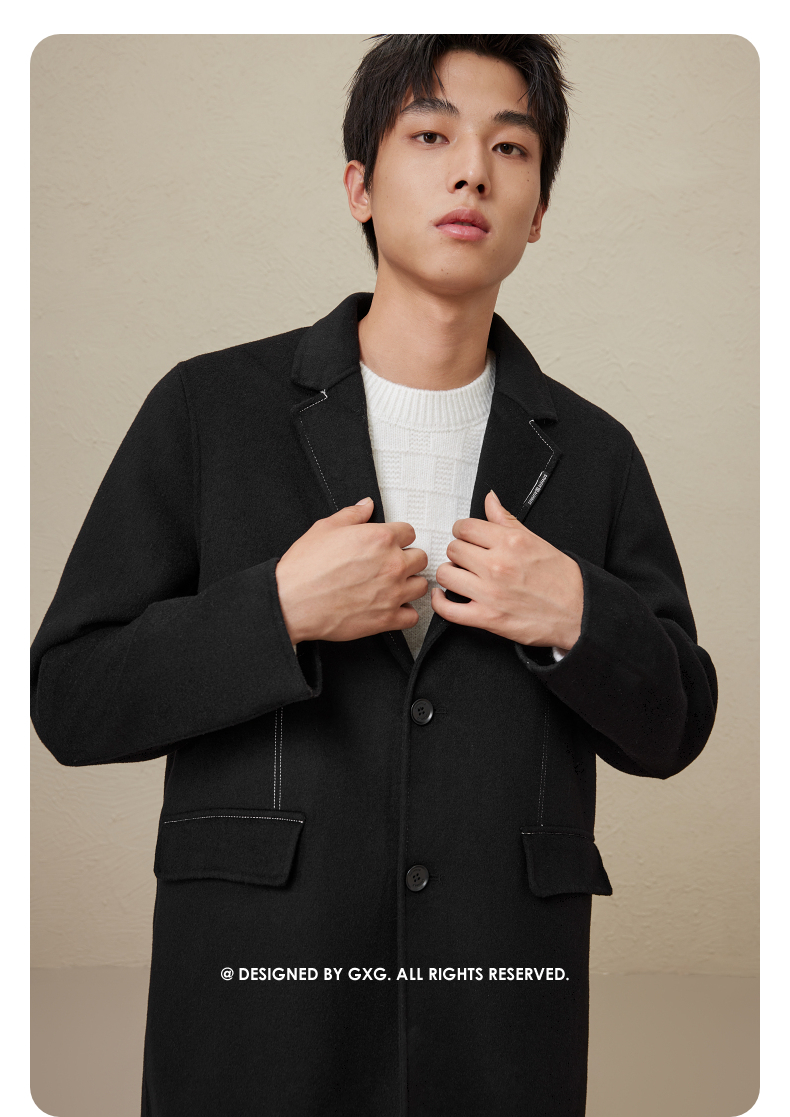 GXG男装黑色简约时尚长款大衣 简约休闲长款大衣外套冬季热卖 GEX12628524