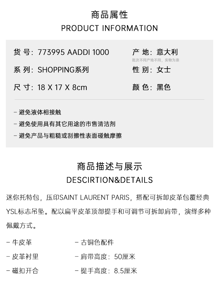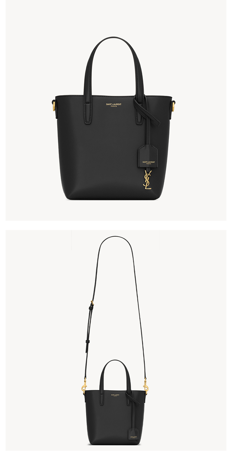 SAINT LAURENT 圣罗兰 女士金属徽标SHOPPING迷你皮革提挎包 黑色 773995 AADDI 1000