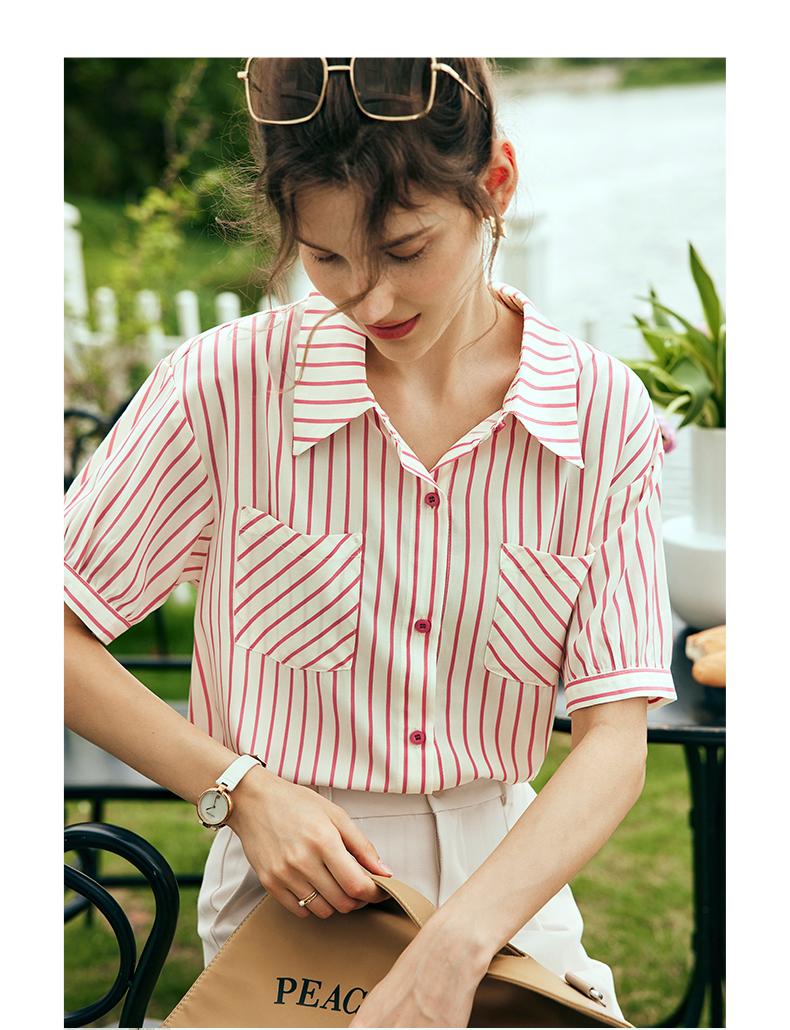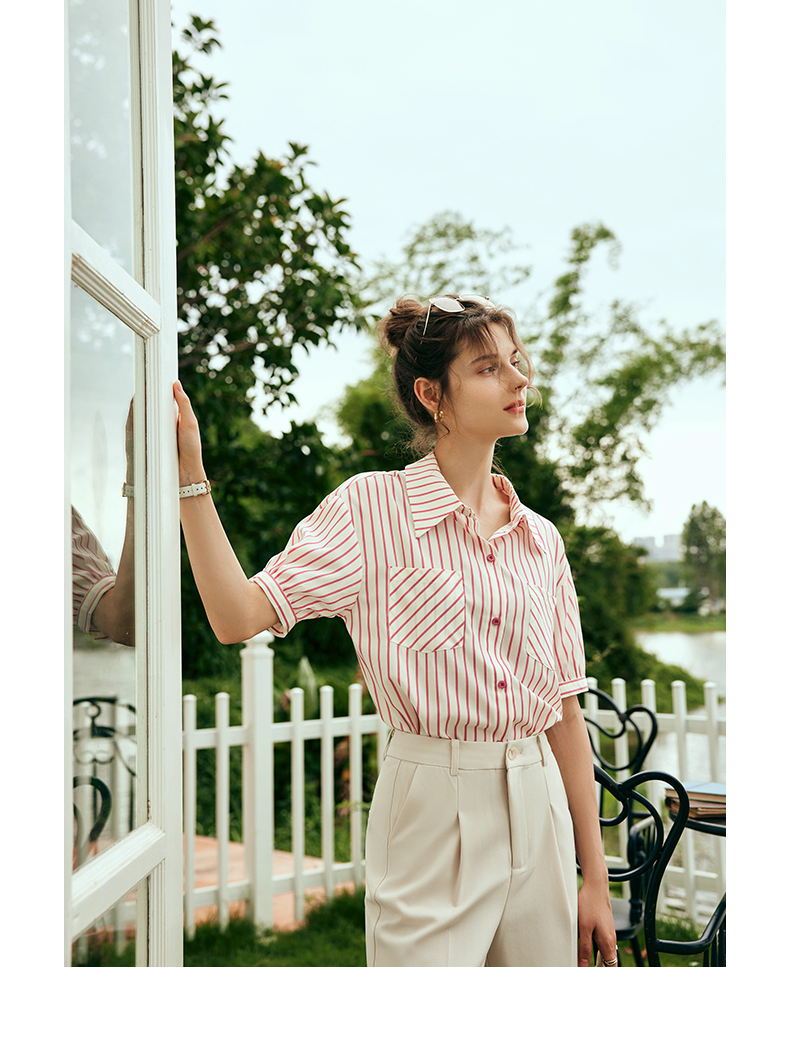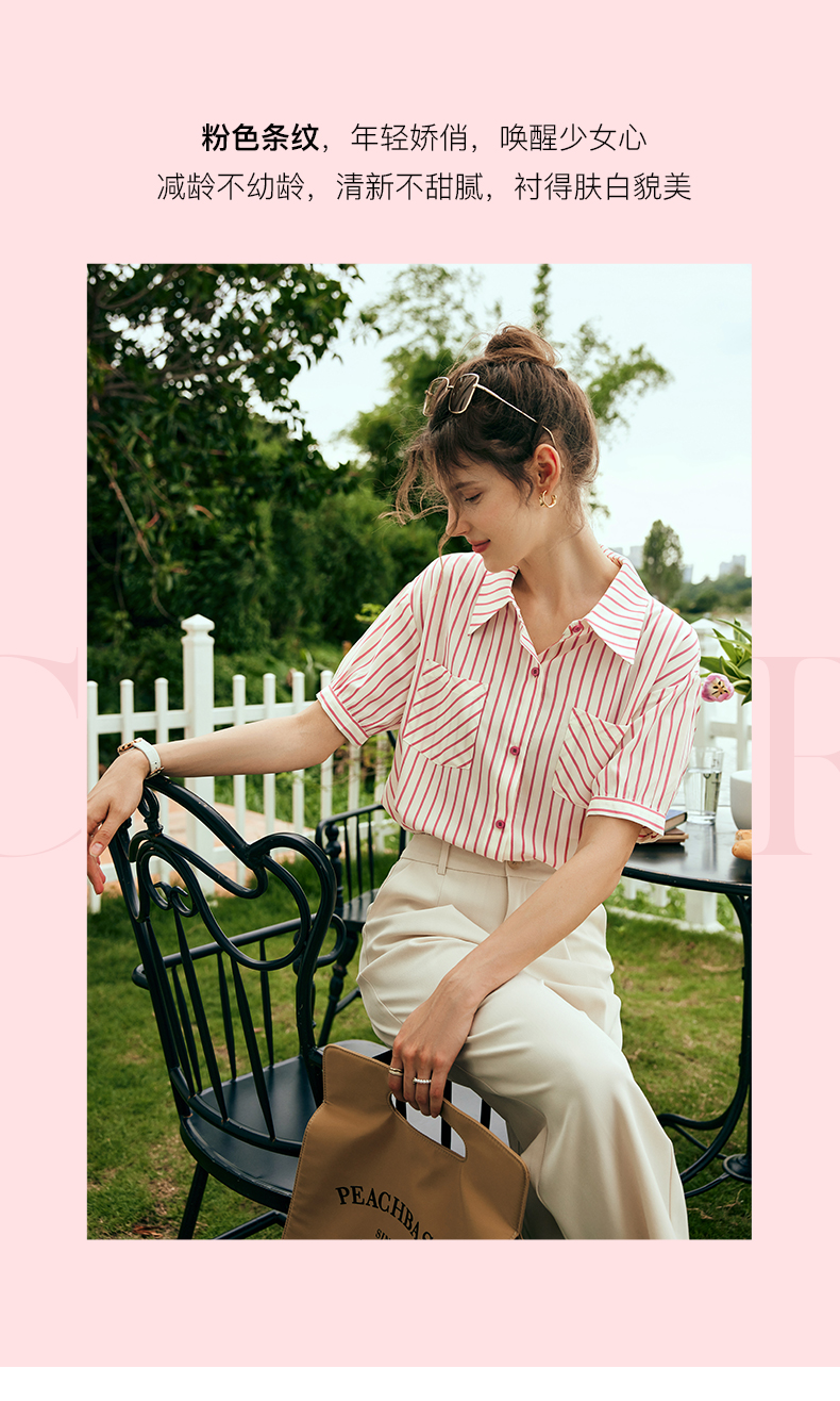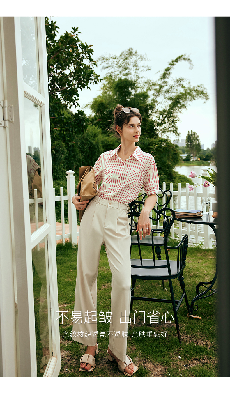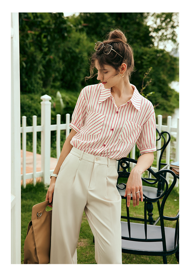 OLrain欧芮儿法式条纹衬衫女夏季2023年新款宽松时尚别致衬衣
