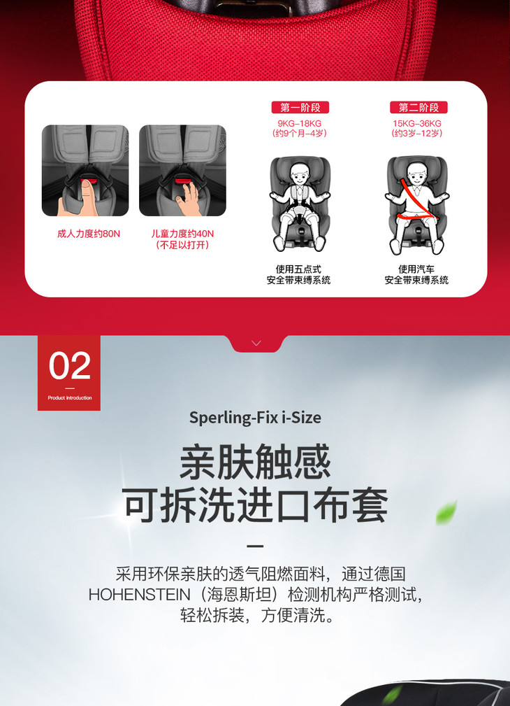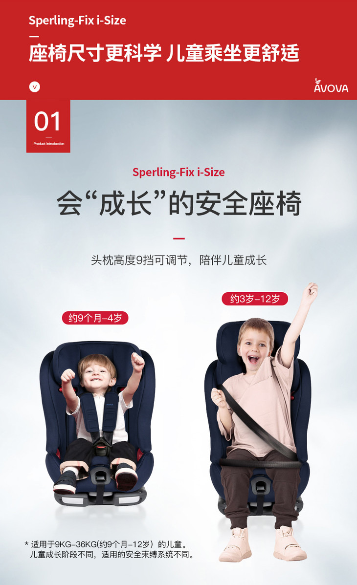 AVOVA德国 斯博林 德国制造儿童安全座椅汽车专用 fix I-size 9个月-12岁 isofix