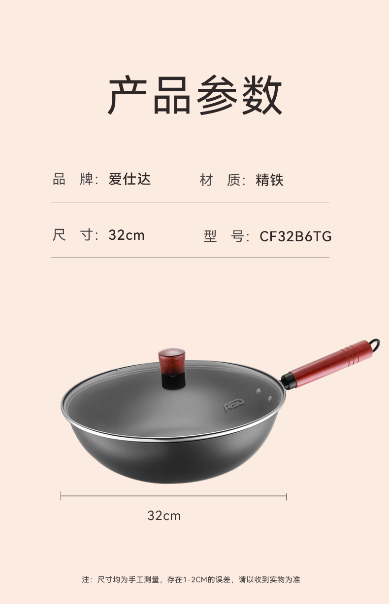 爱仕达CF32B6TG精铁无涂层爆炒锅【BH】【TL】