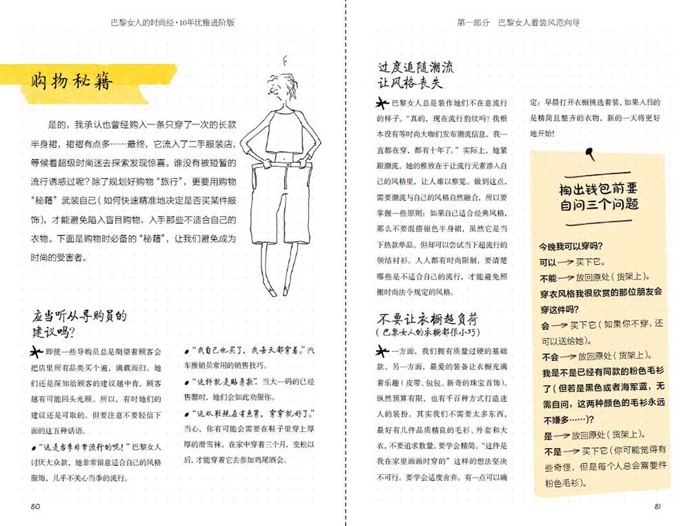 本书分为四个部分:服饰搭配,巴黎女人着装风范向导;妆发技巧,从头到脚巴黎风;家居购物,巴黎女人的家;生活旅行,独一无二的巴黎。