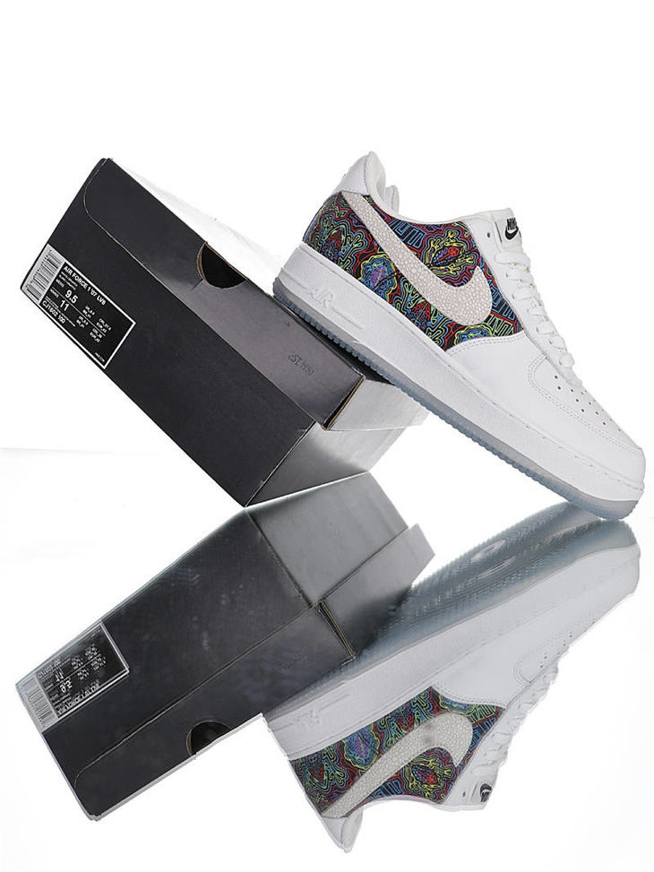 耐克Nike Air Force 1 '07 Lv8 庆祝波多黎各日 采用荔枝纹皮革鞋面材质 内置全掌air sole气垫 空军一号 皮革白彩青蛙配色