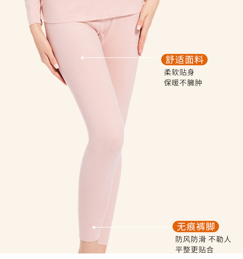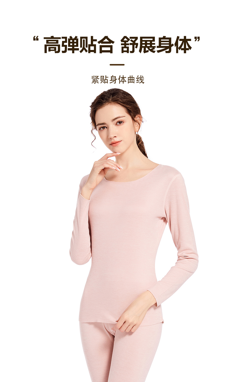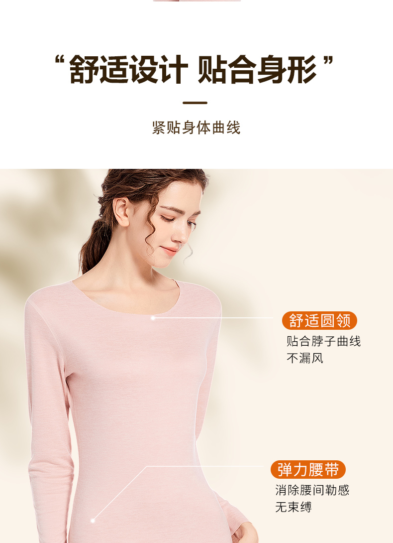 洁丽雅女士保暖套装轻薄保暖蚕丝羊毛保暖舒适内衣女套装