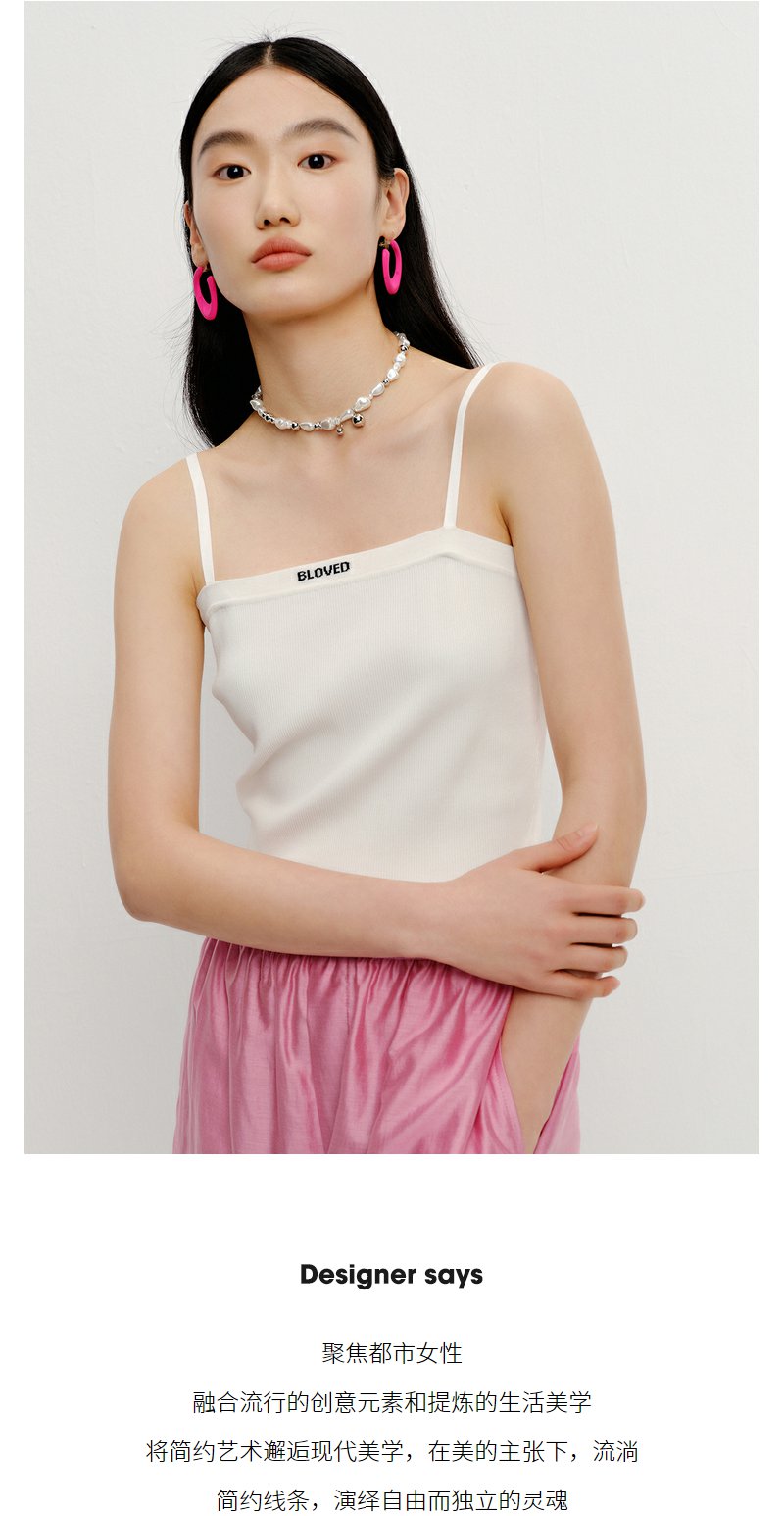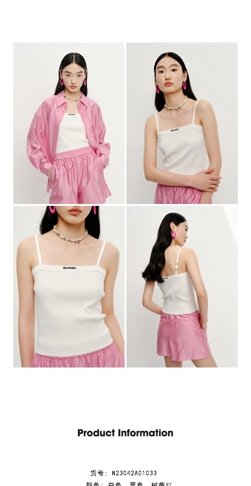 NEELLY纳俪商场同款夏季新款平口针织衫吊带小背心内搭显瘦上衣N23042A01033