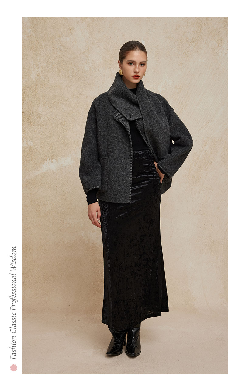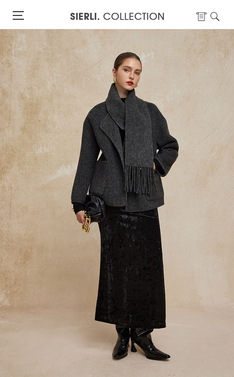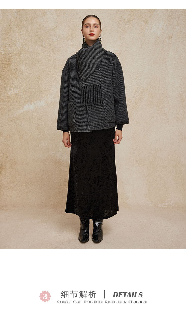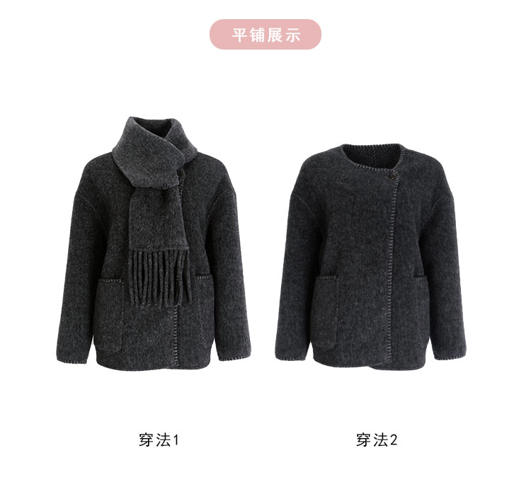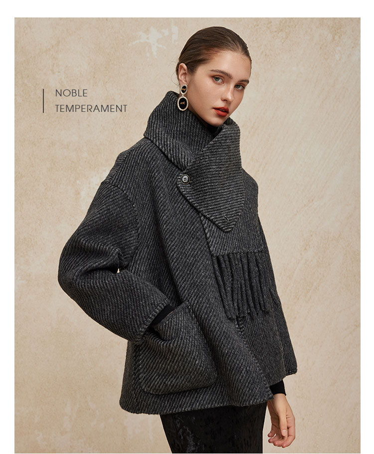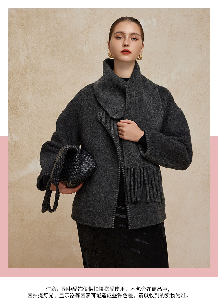 PH934斯尔丽24新款配流苏围巾时尚INS博主主推双面穿羊毛大衣