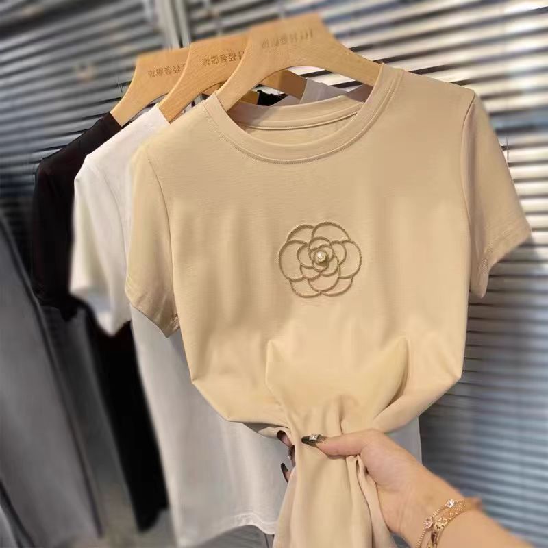 夏季薄款山茶花T恤韩版上衣半袖女士SZ2683