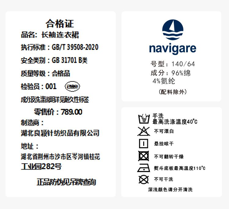 【纳维凯尔】【120-165】Navigare意大利小帆船女童长袖连衣裙