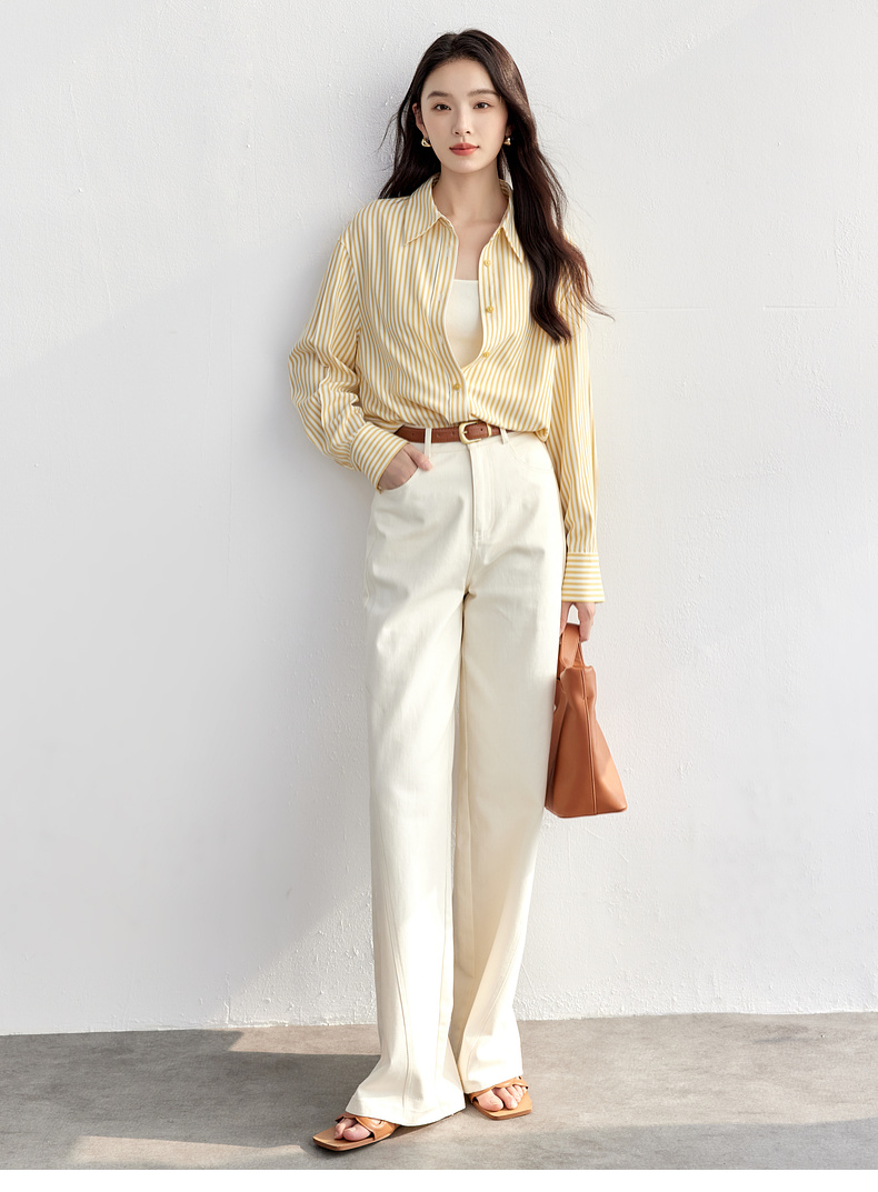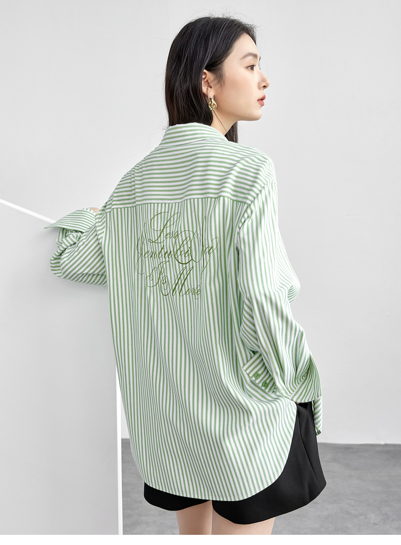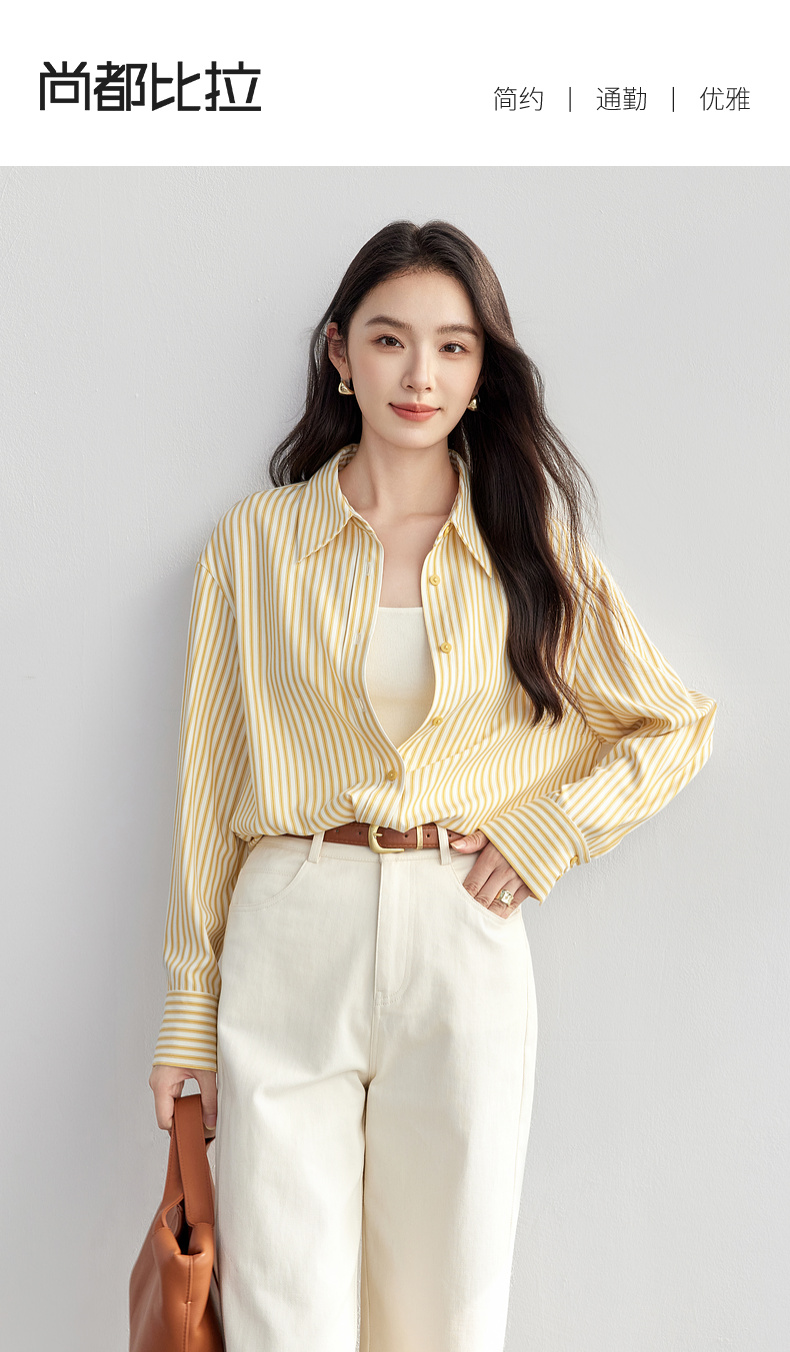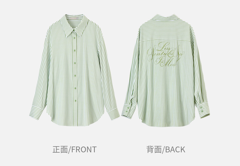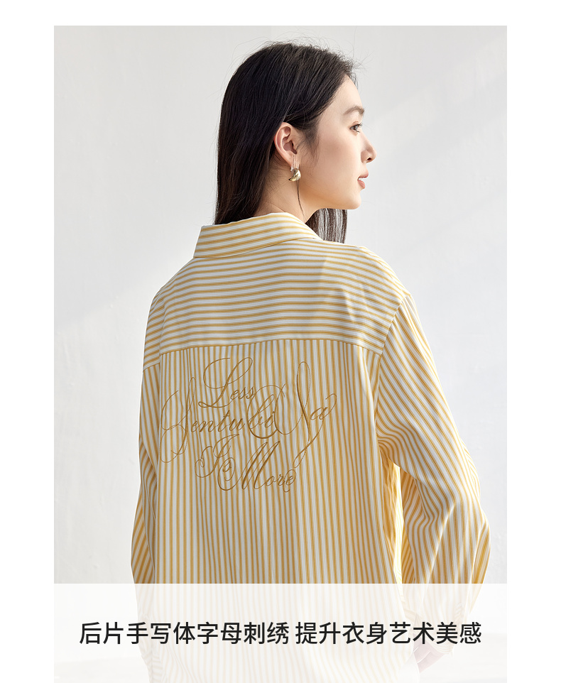 【内购】尚都比拉条纹衬衫通勤艺术感立体字母刺绣翻领落肩宽松轻盈垂感衬衫-57876