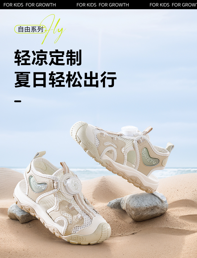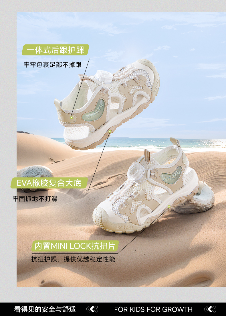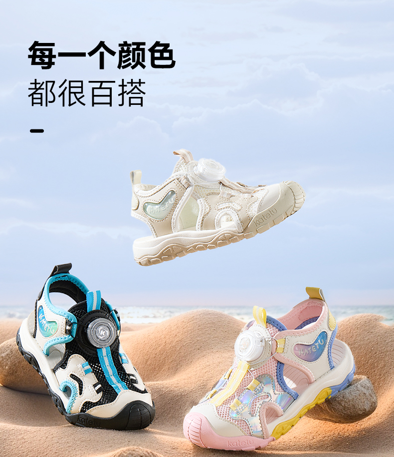 卡特兔童鞋儿童运动鞋2025夏季新品驱蚊鞋旋钮鞋防滑耐磨儿童凉鞋