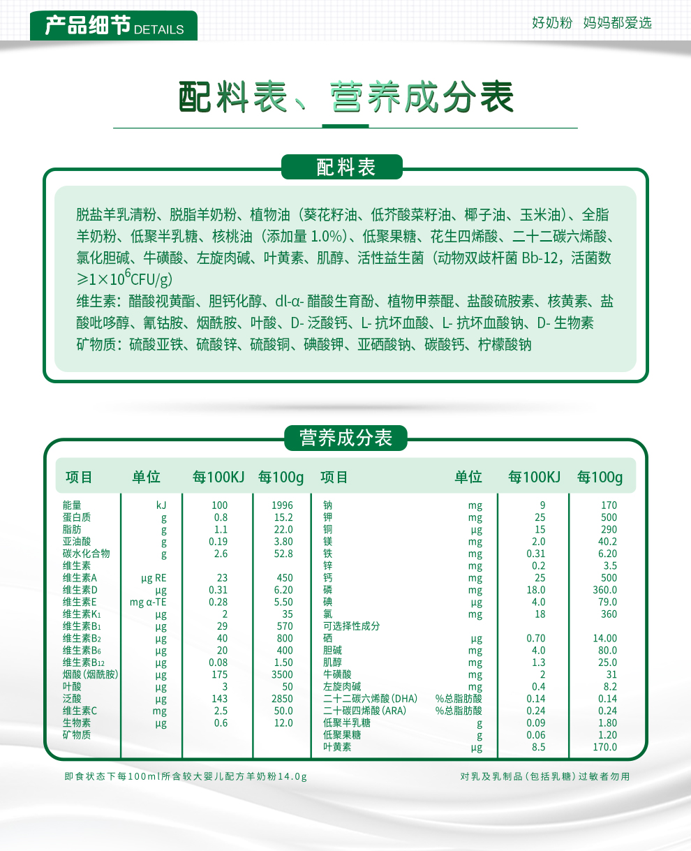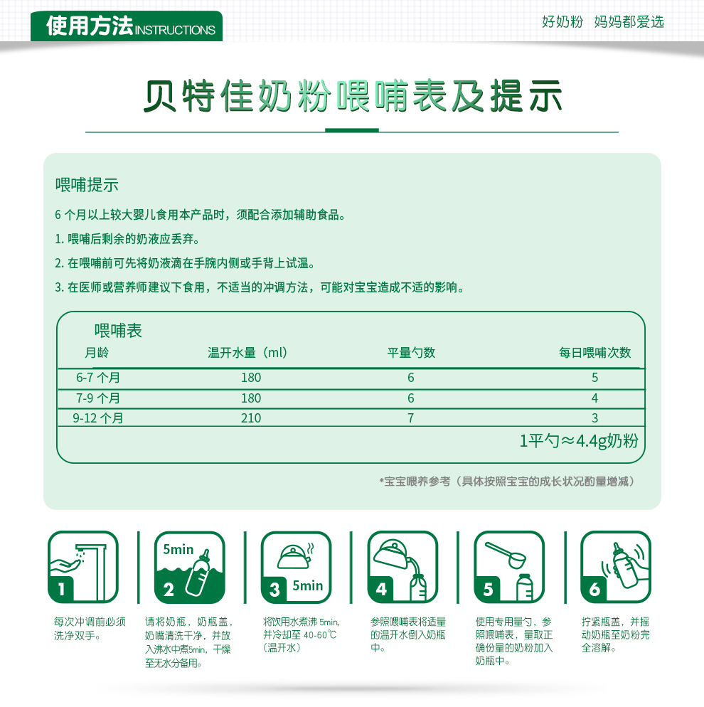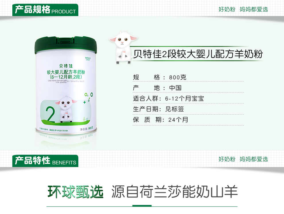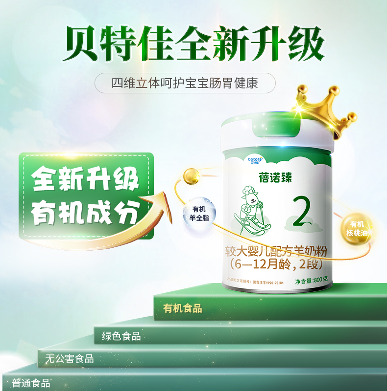 贝特佳较大婴儿配方羊奶粉2段 800g罐装(6-12个月)