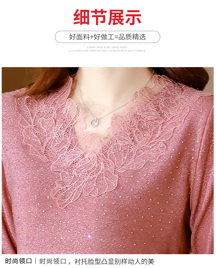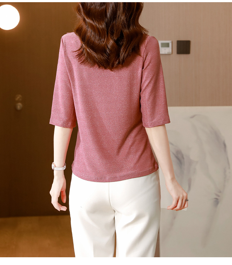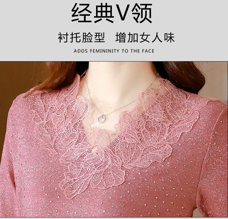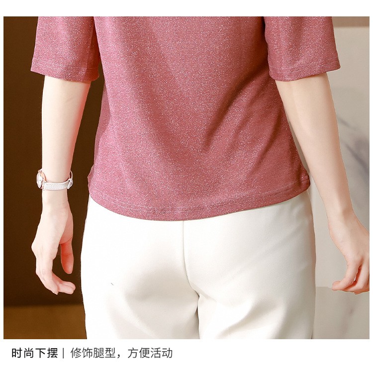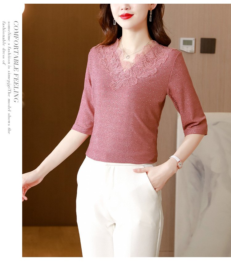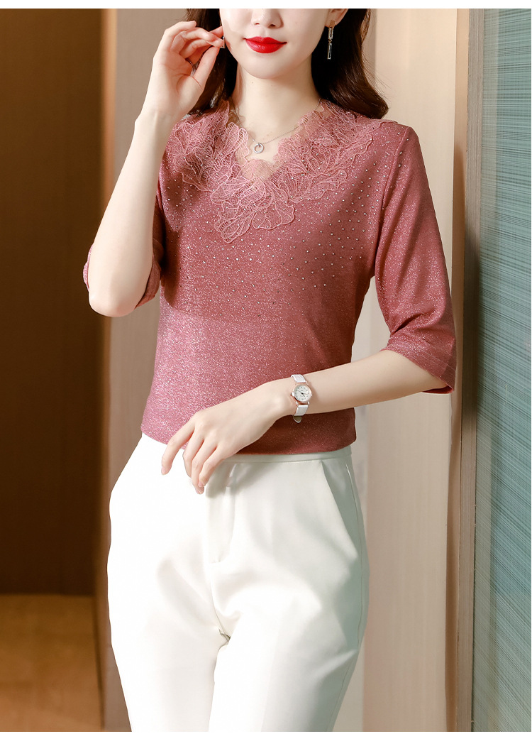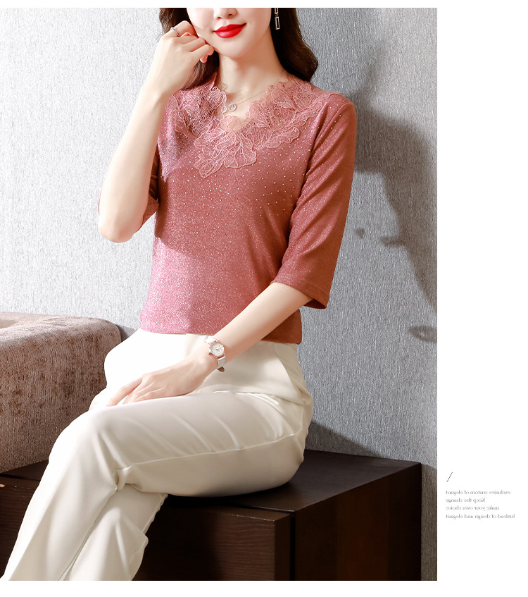 短袖T恤,洋气薄款镂空烫钻蕾丝网纱打底衫KQL-8579