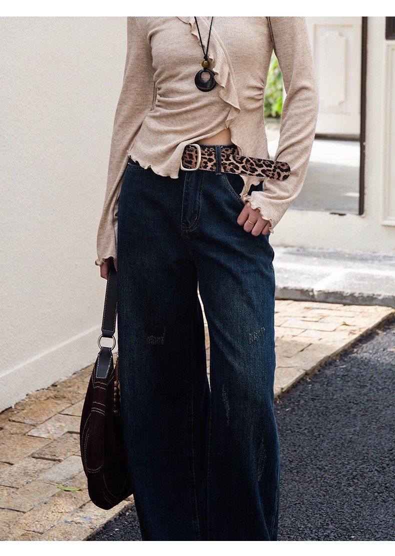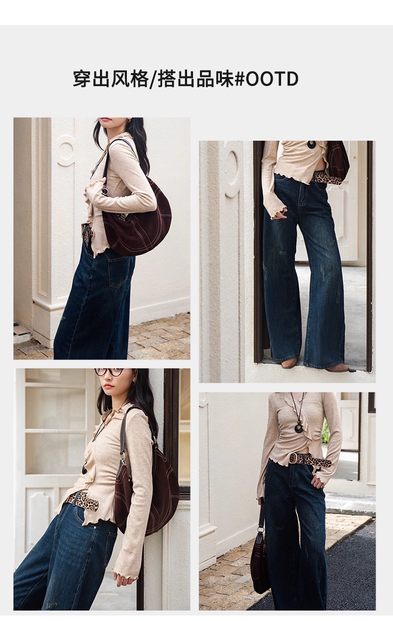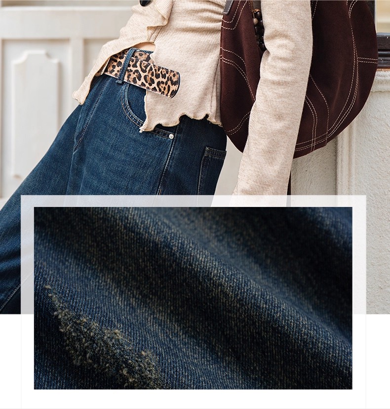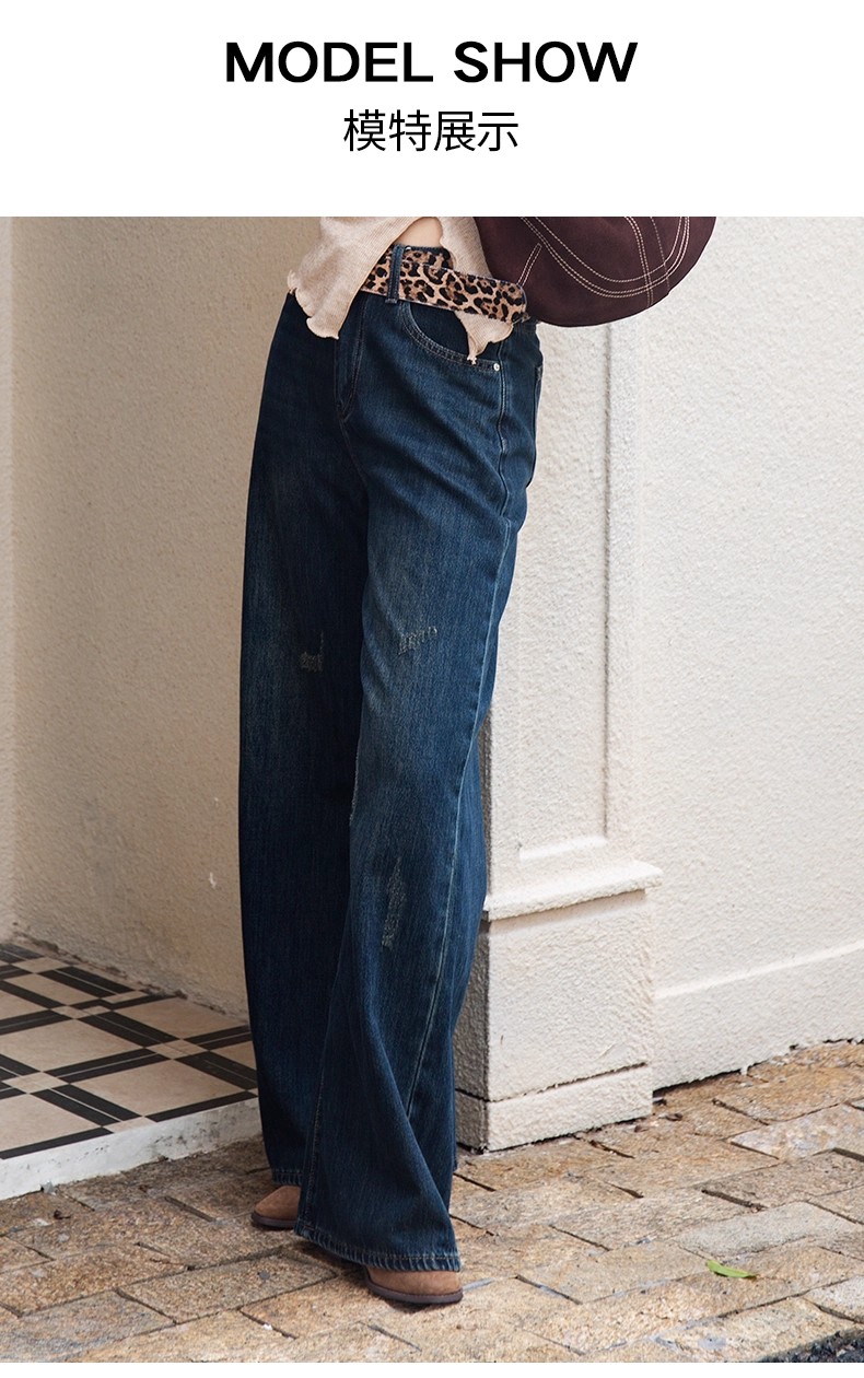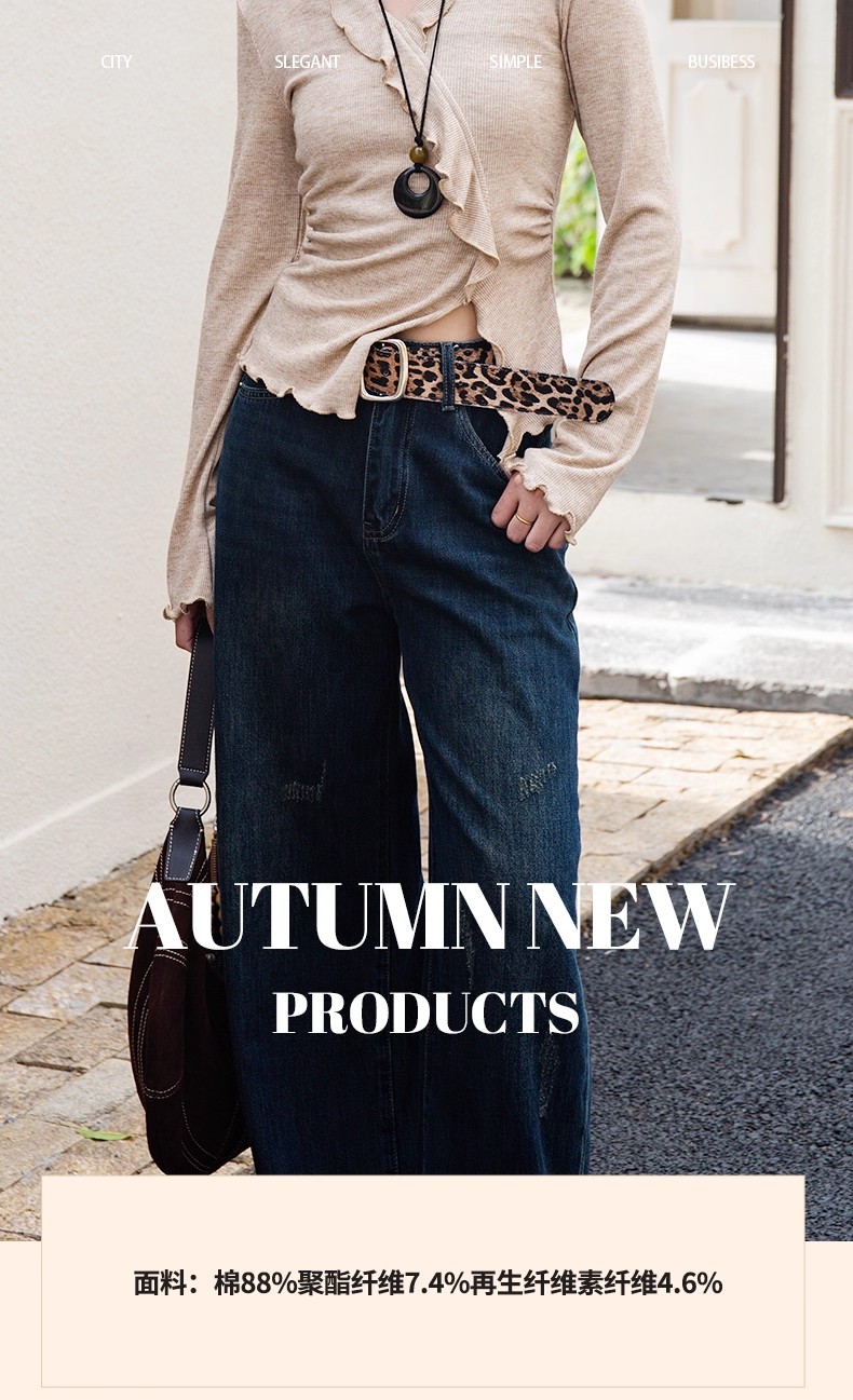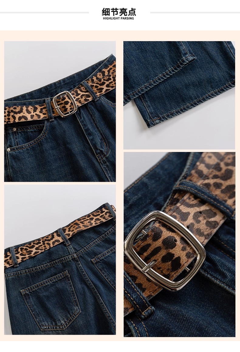 【门店同款】ENJOY冬季豹纹腰带窄版阔腿裤 167100716