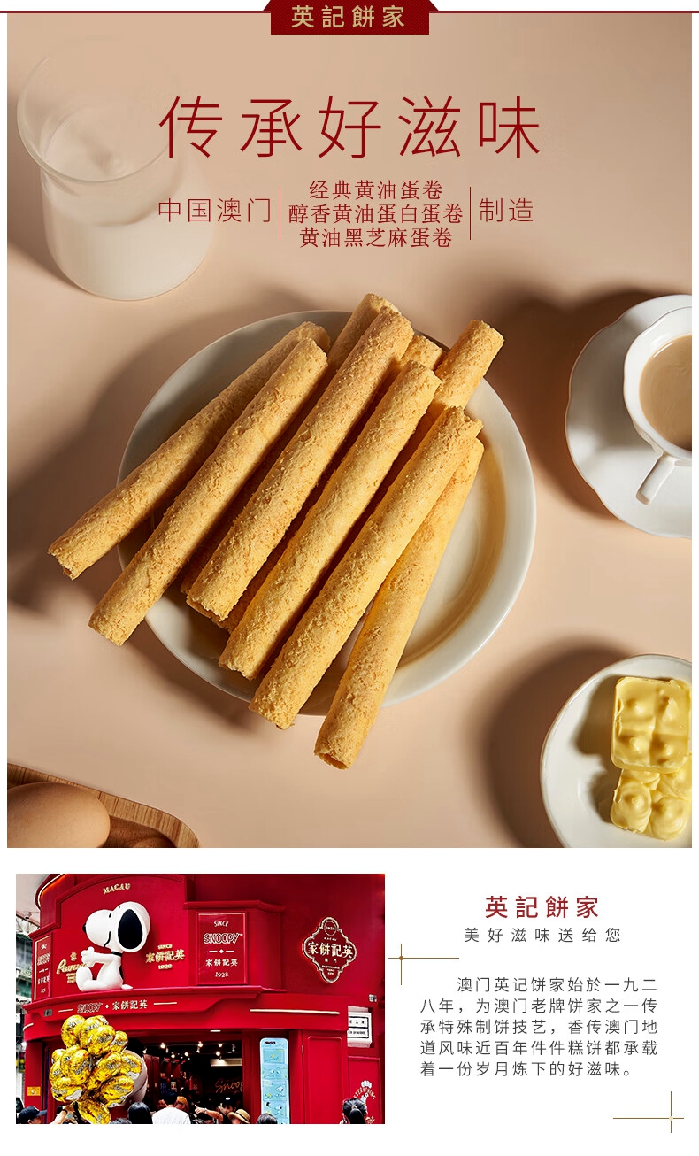 澳门英记黄油蛋卷/黄油蛋白蛋卷(新配方)165g/152910/050329-2 手工糕点零食伴手礼盒春节