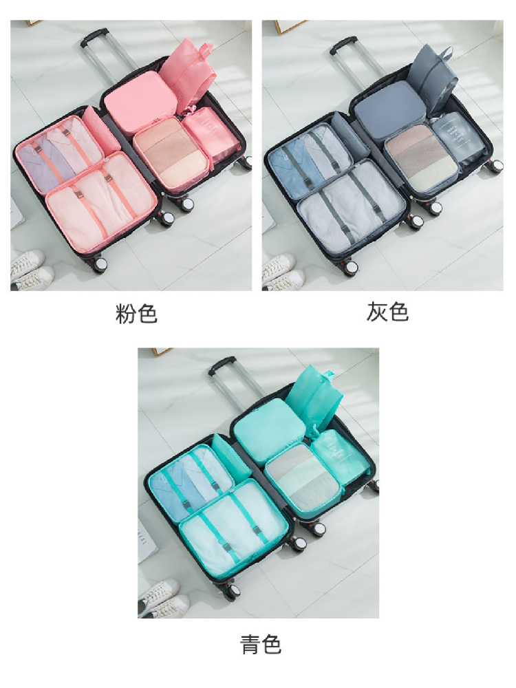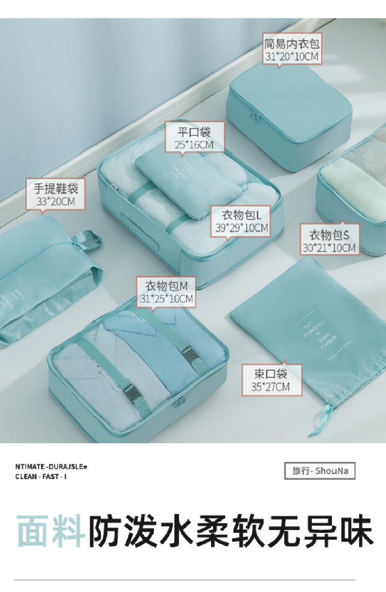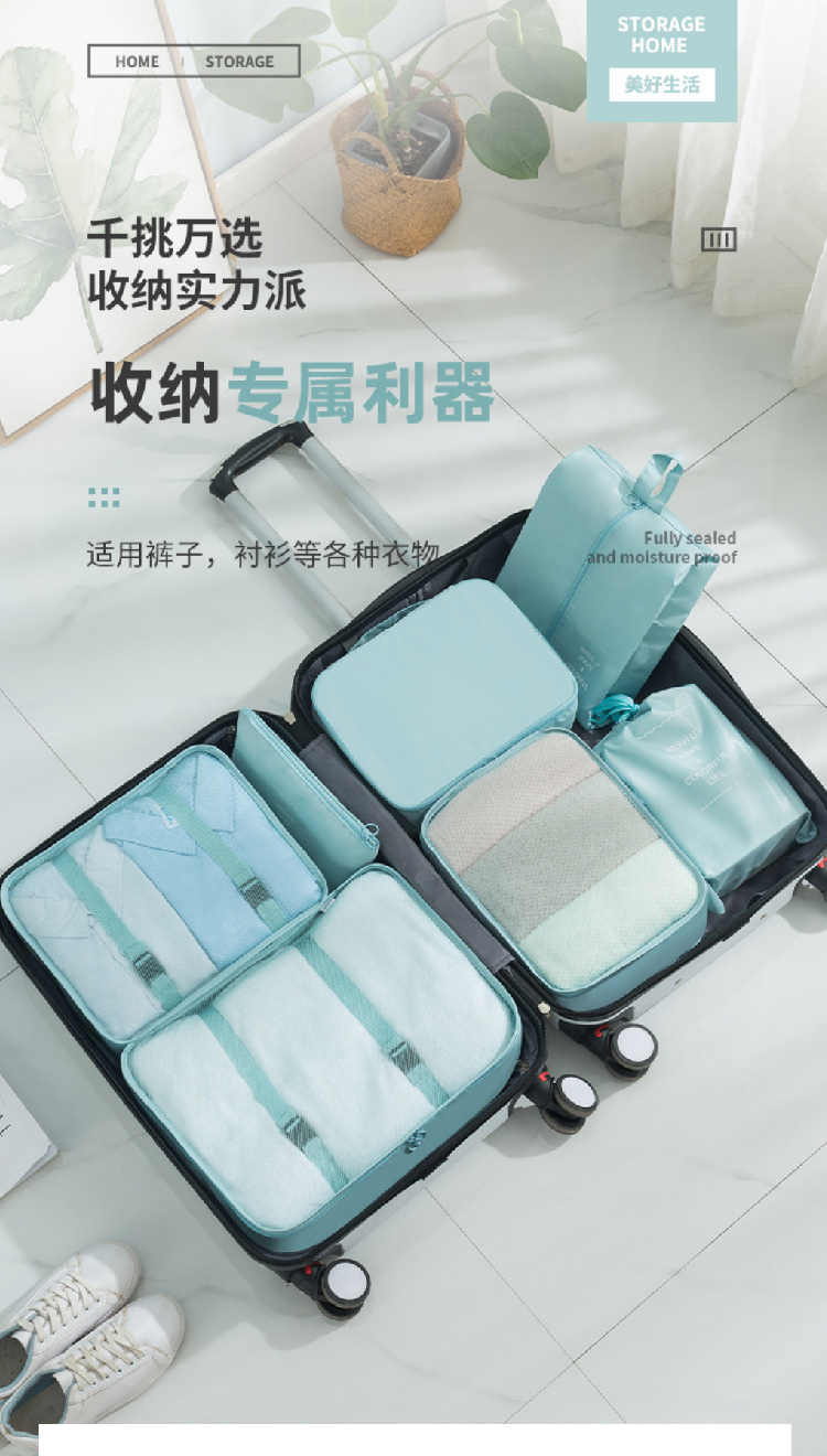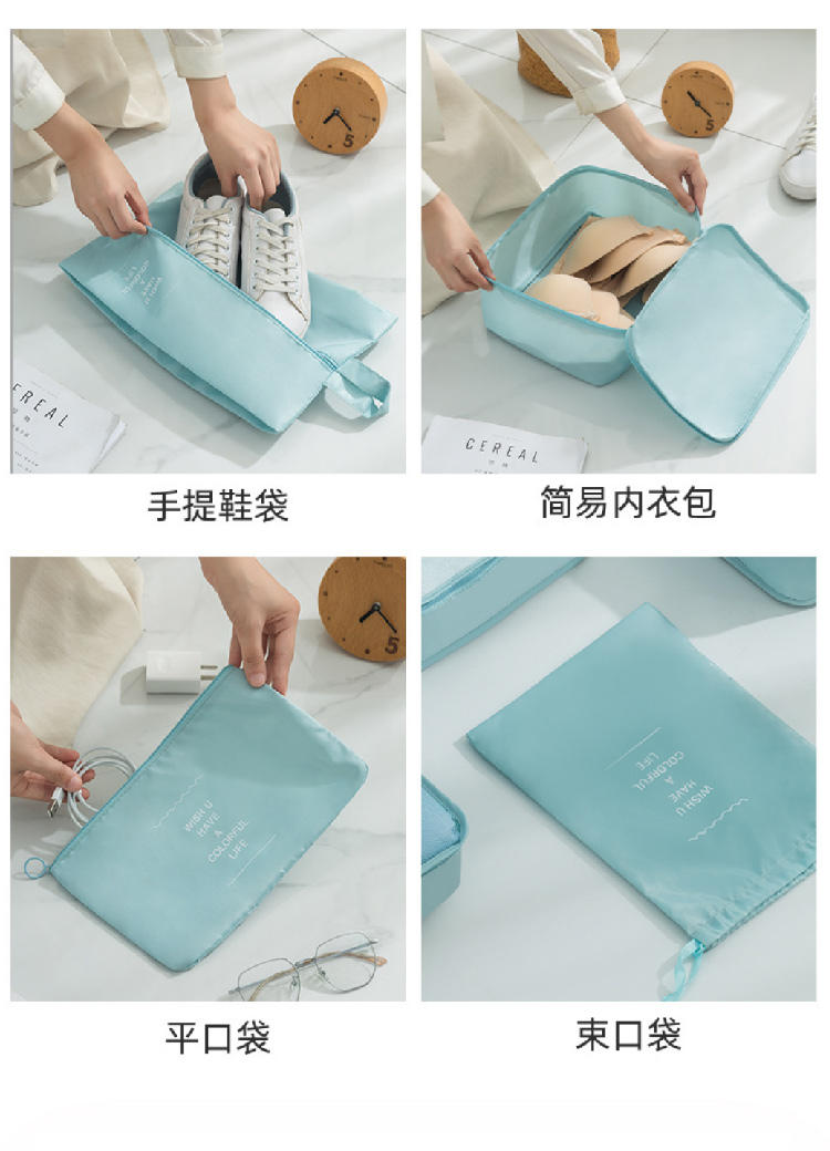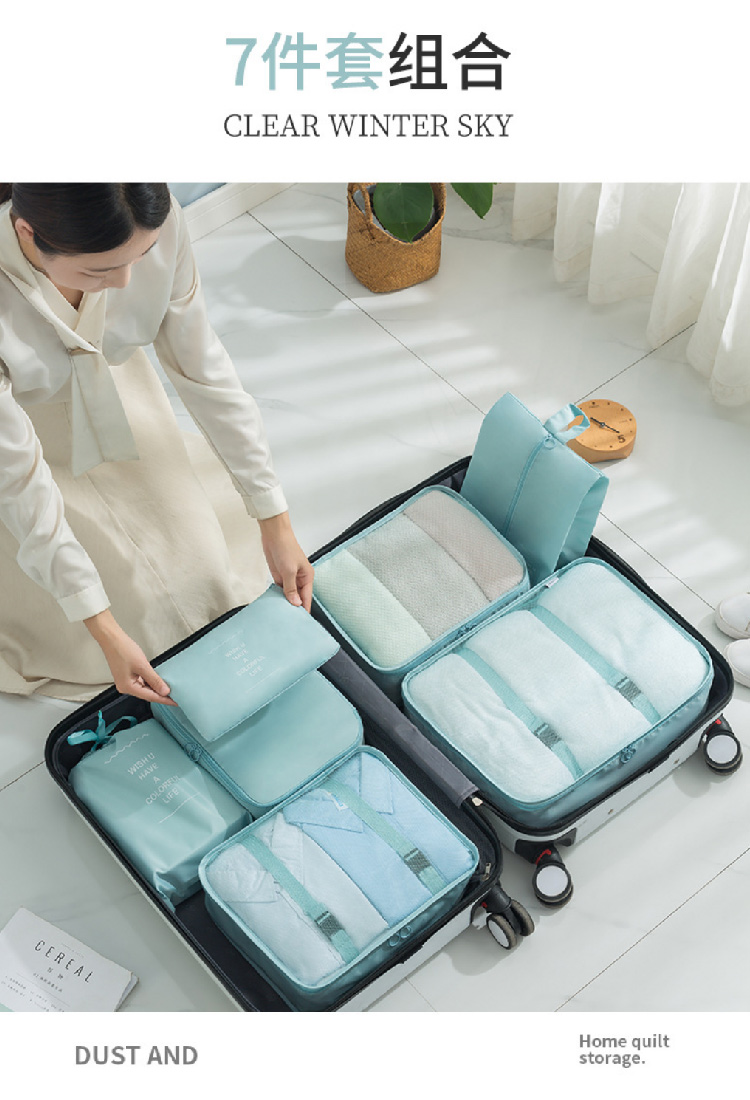 旅行收纳袋七件套装斜纹防水行李箱衣物整理收纳包多件套