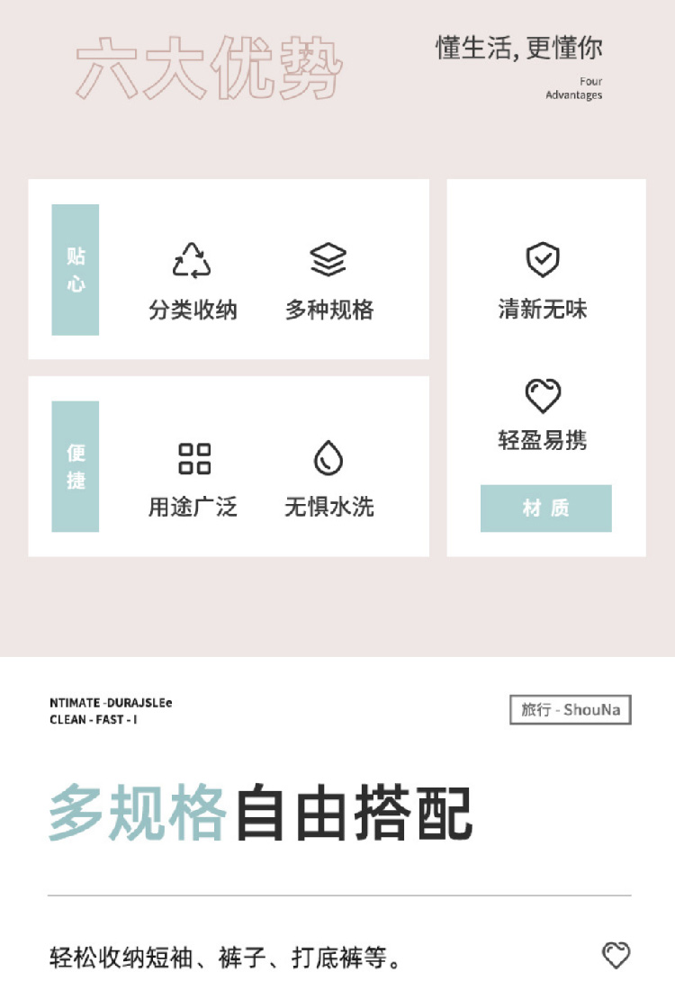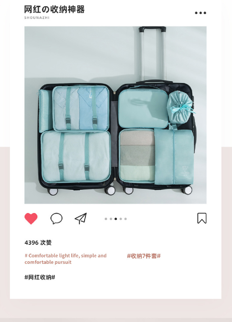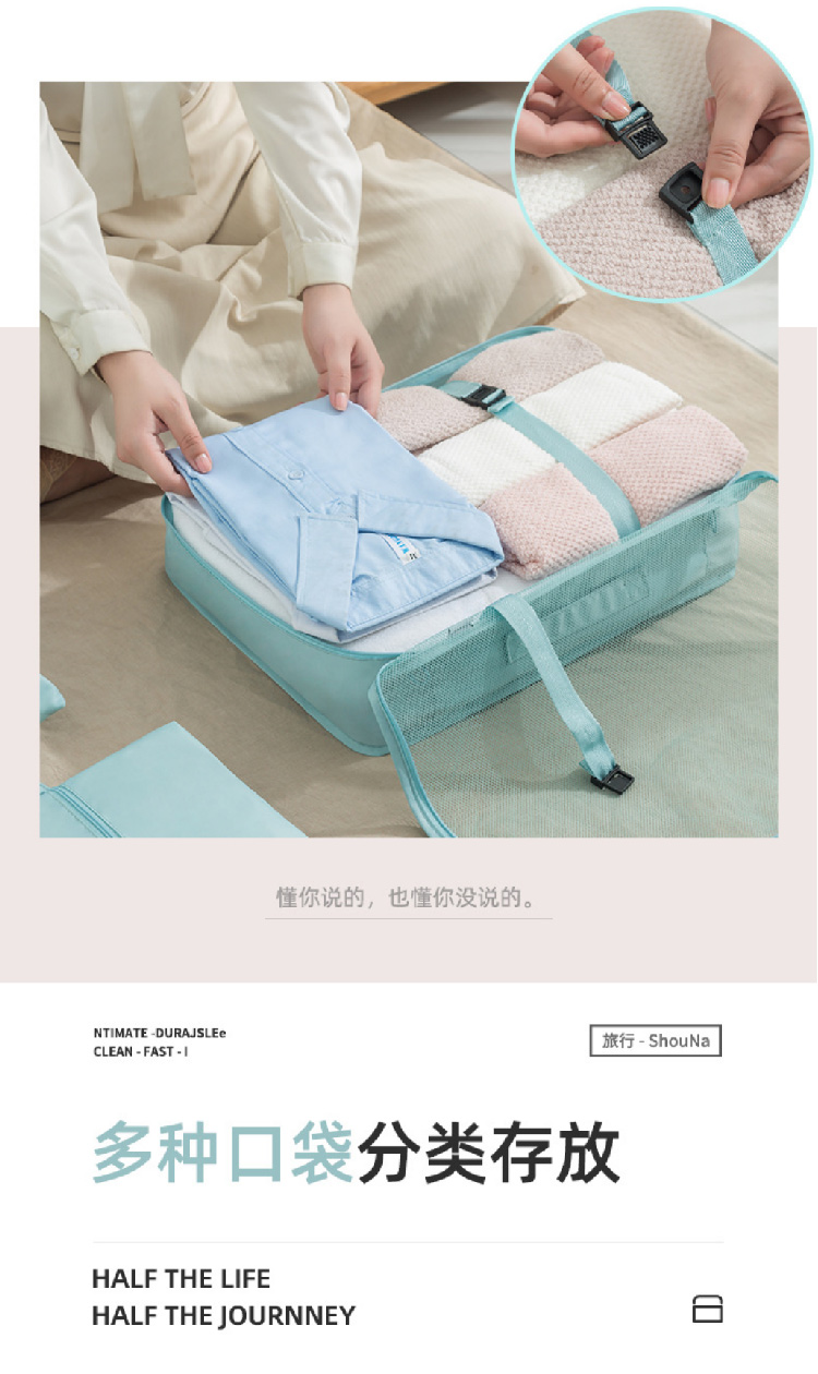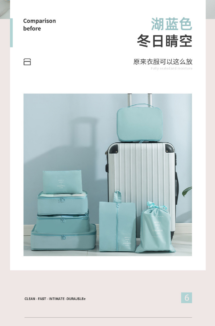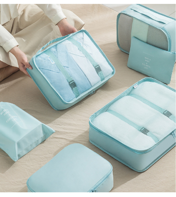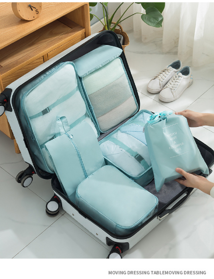 旅行收纳袋七件套装斜纹防水行李箱衣物整理收纳包多件套
