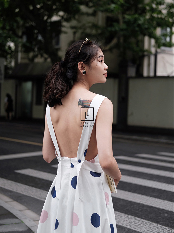 AtelierMissLu-「露背合理」趣味波点方领露背裙-0000620