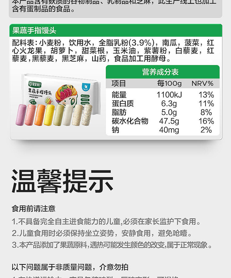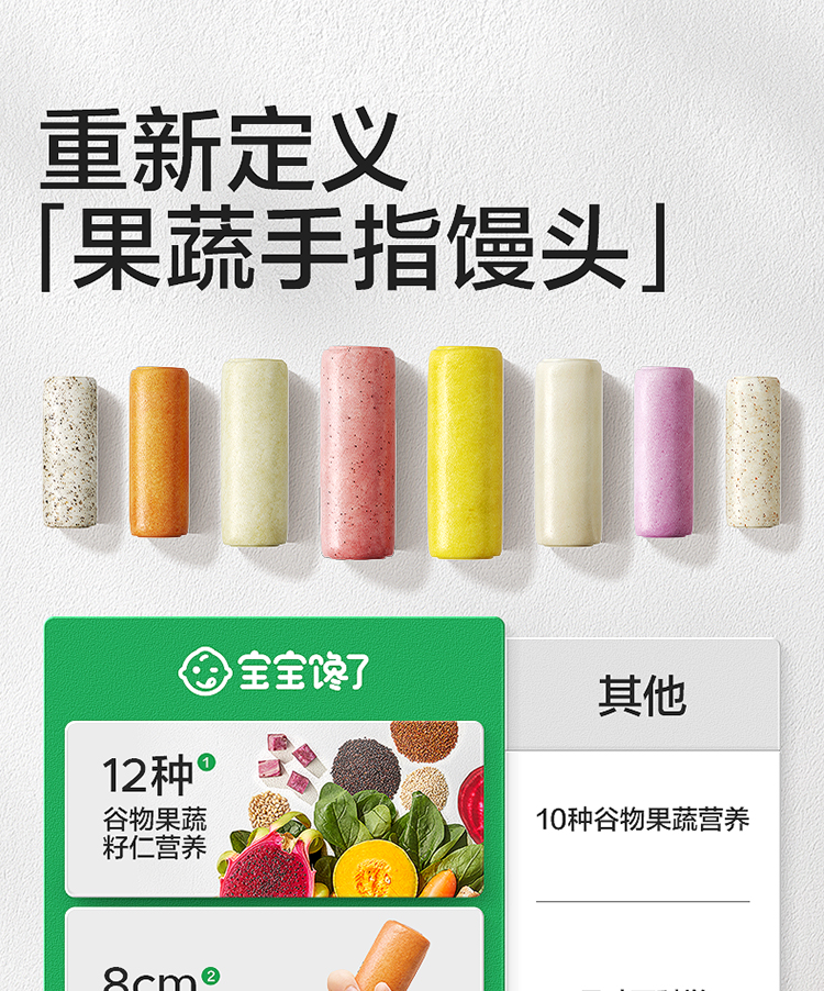 【宝宝馋了】果蔬手指馒头 12种谷物果蔬籽仁 送8月+婴幼儿食谱