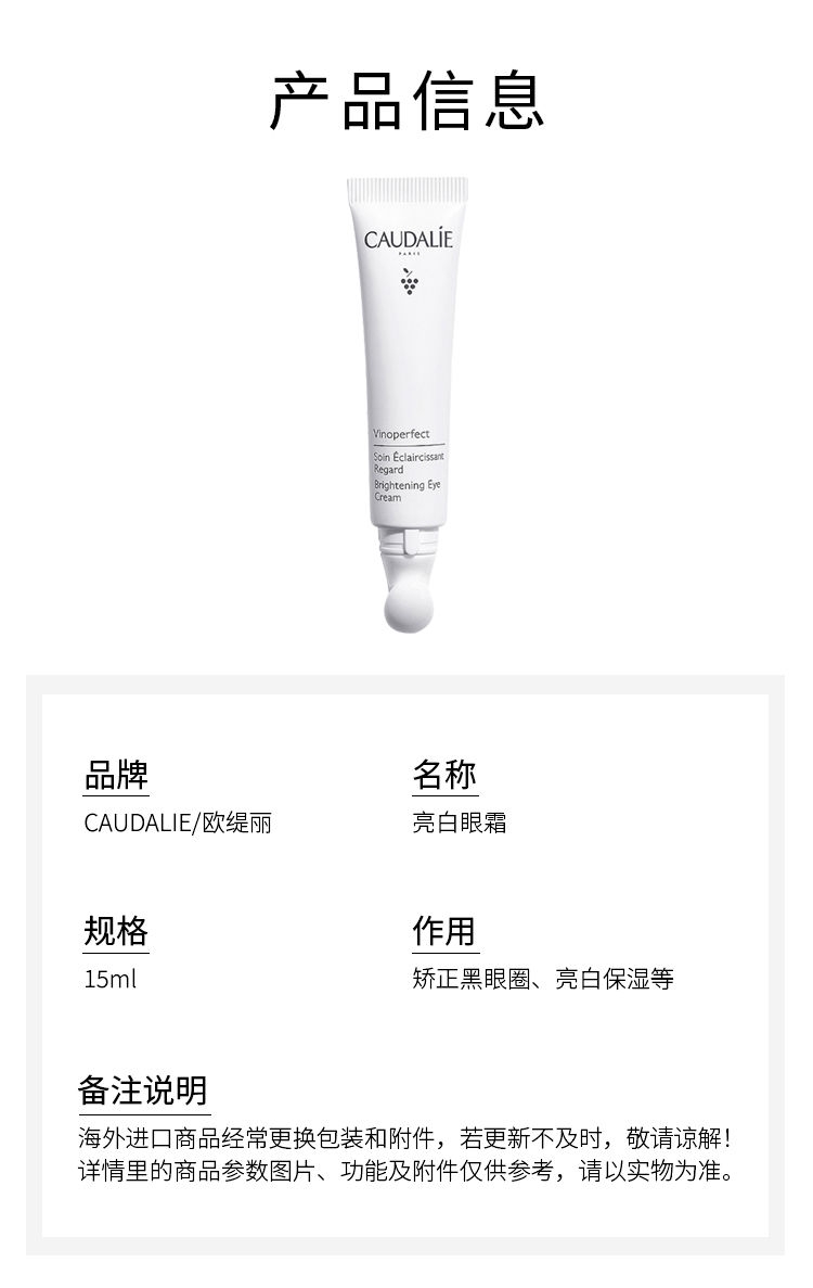欧缇丽Caudalie臻美润白眼霜15ml 提亮眼周淡化眼纹