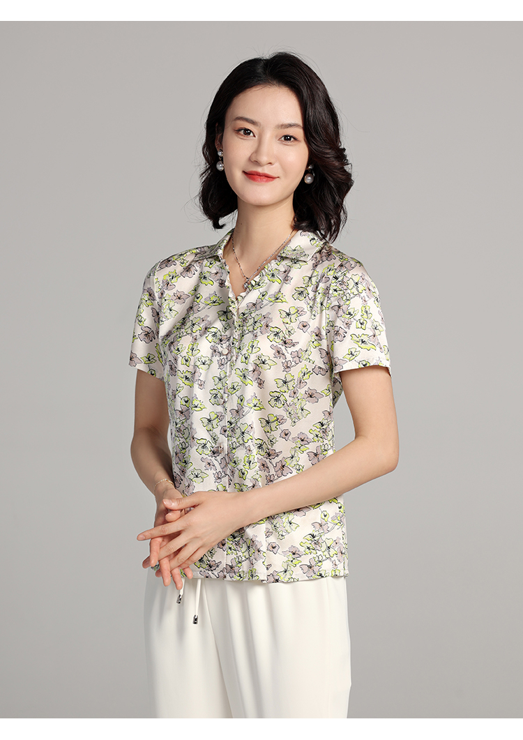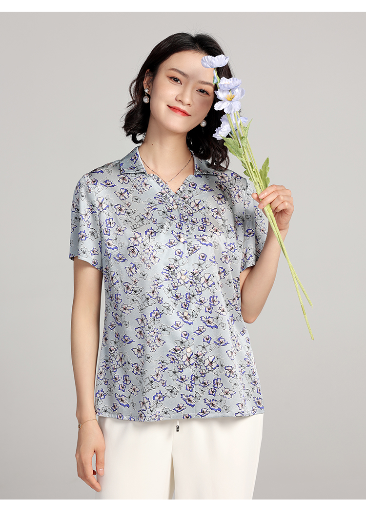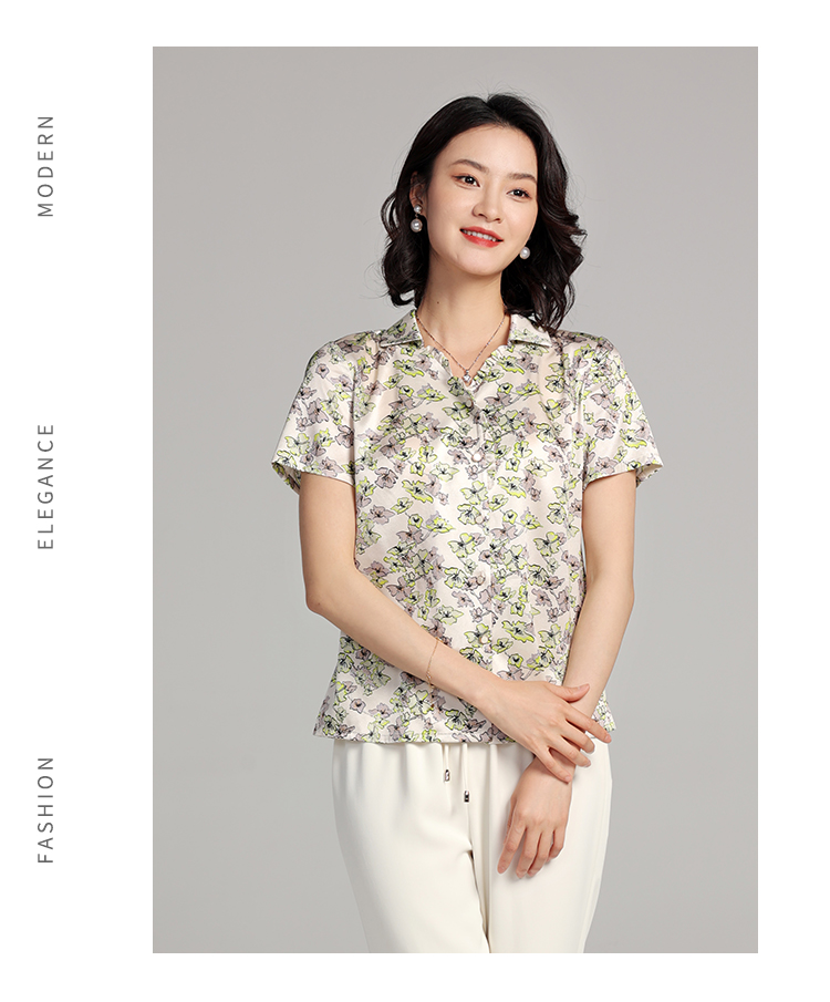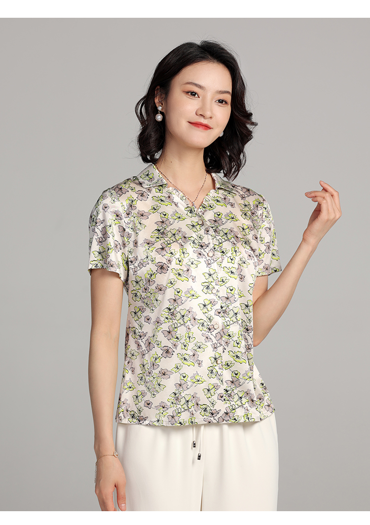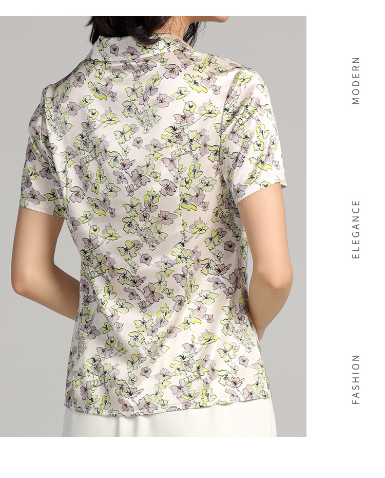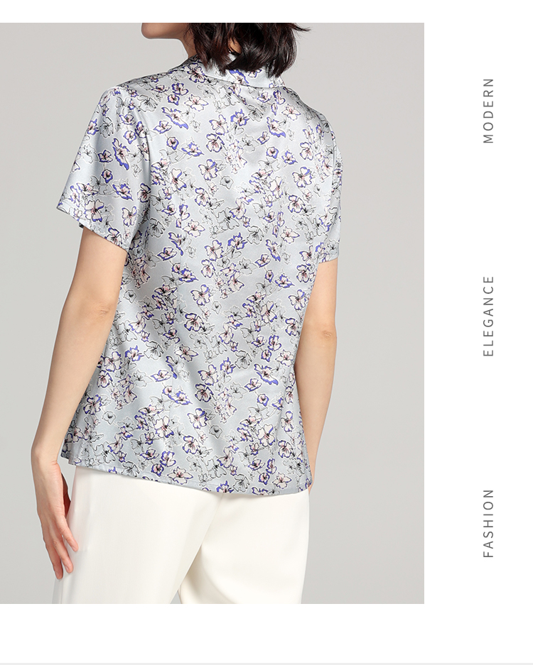 夏季新款 气质桑蚕丝真丝小碎花短袖衬衣女E22CS42