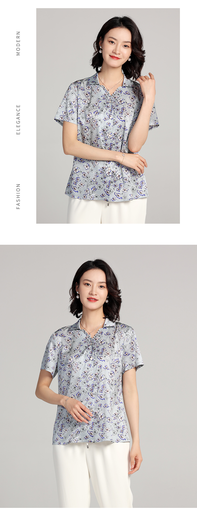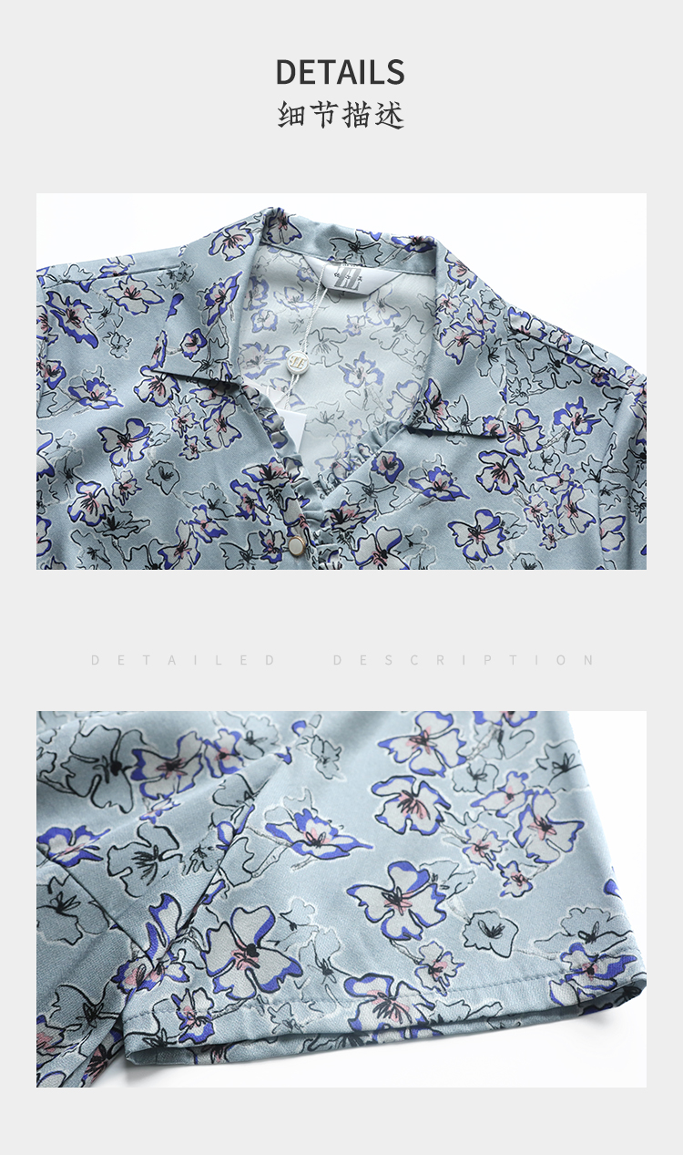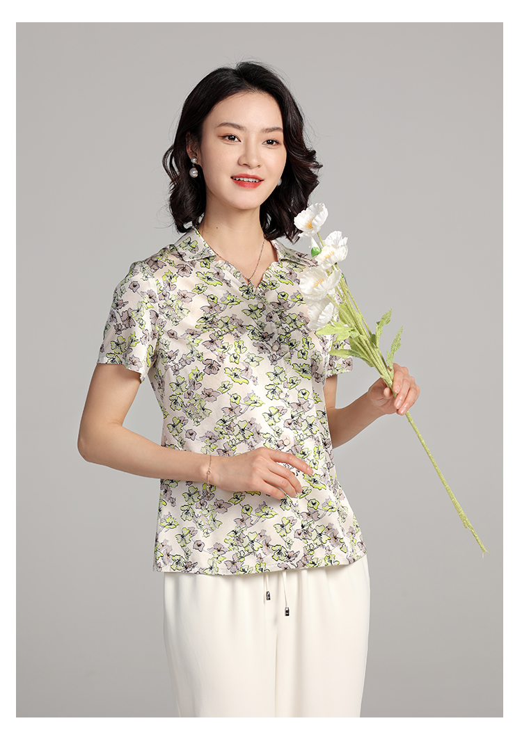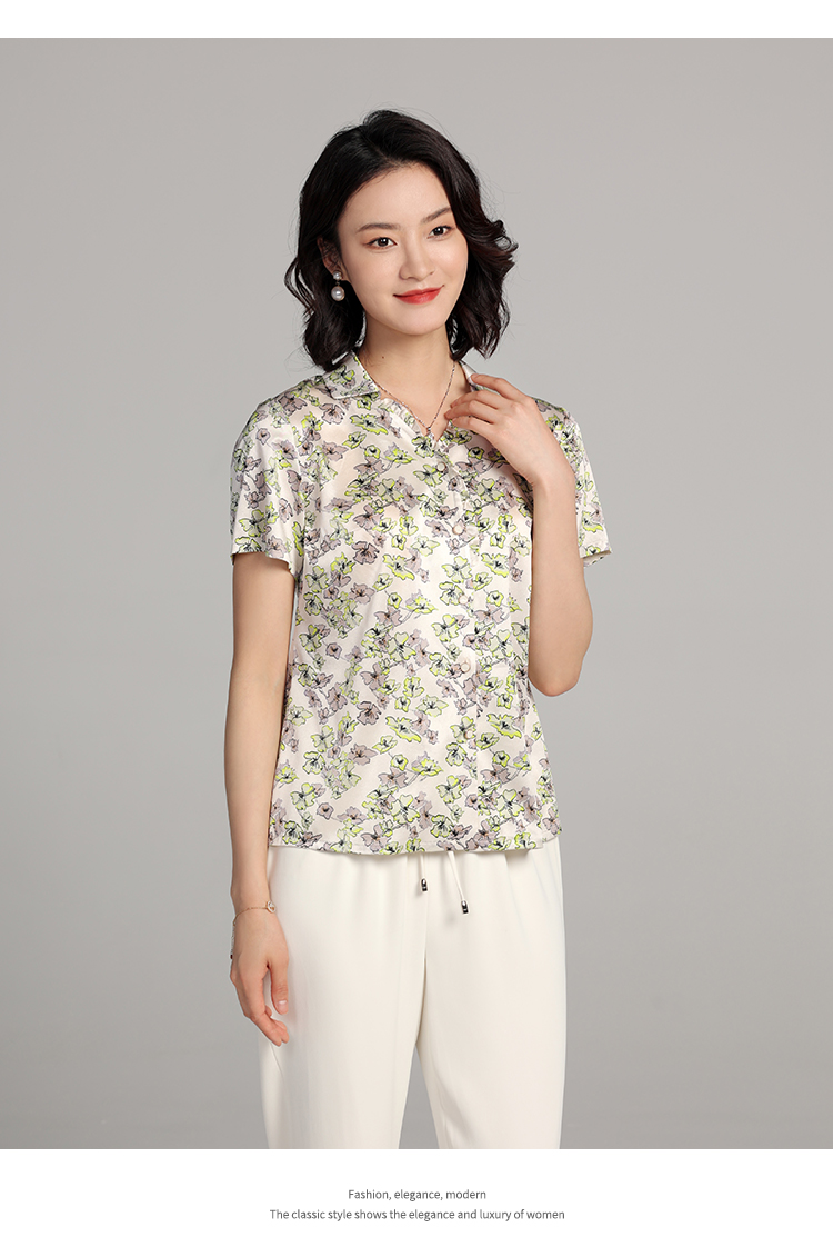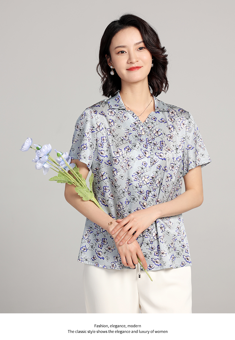 夏季新款 气质桑蚕丝真丝小碎花短袖衬衣女E22CS42
