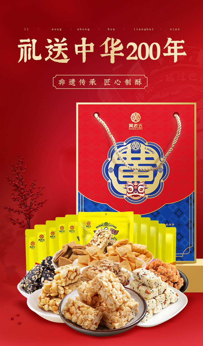 【黄老五 年货大礼包】黄老五咕呱大礼包14袋1113g家庭量贩装,黄老五锦瑟酥年1318g礼盒-11袋